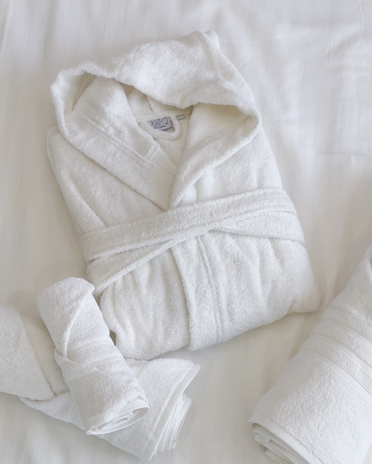 Accappatoio Con Cintura e Cappuccio Bianco in Cotone Vingi Hotellerie