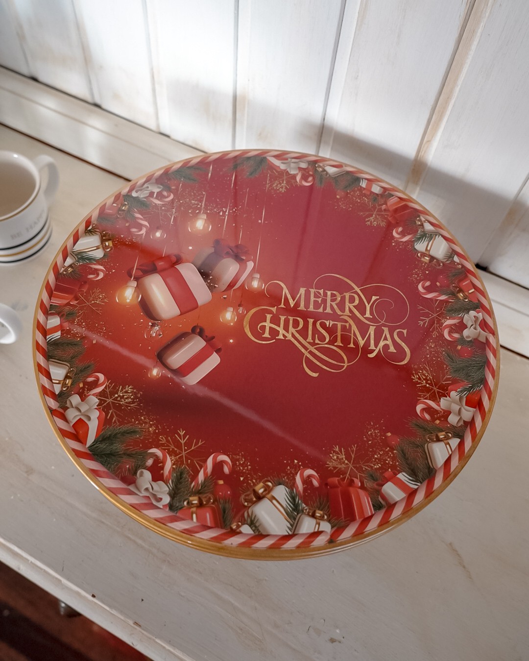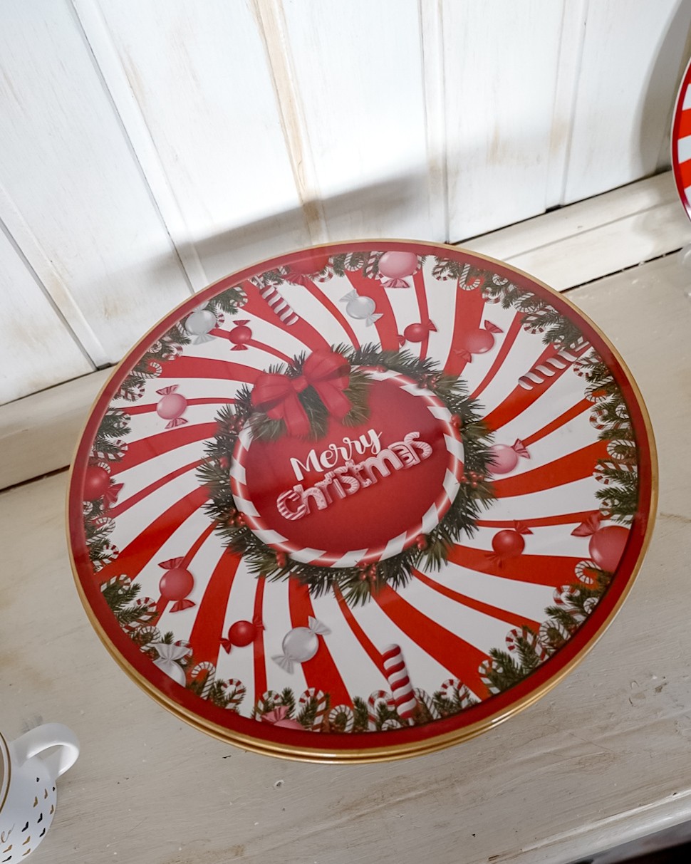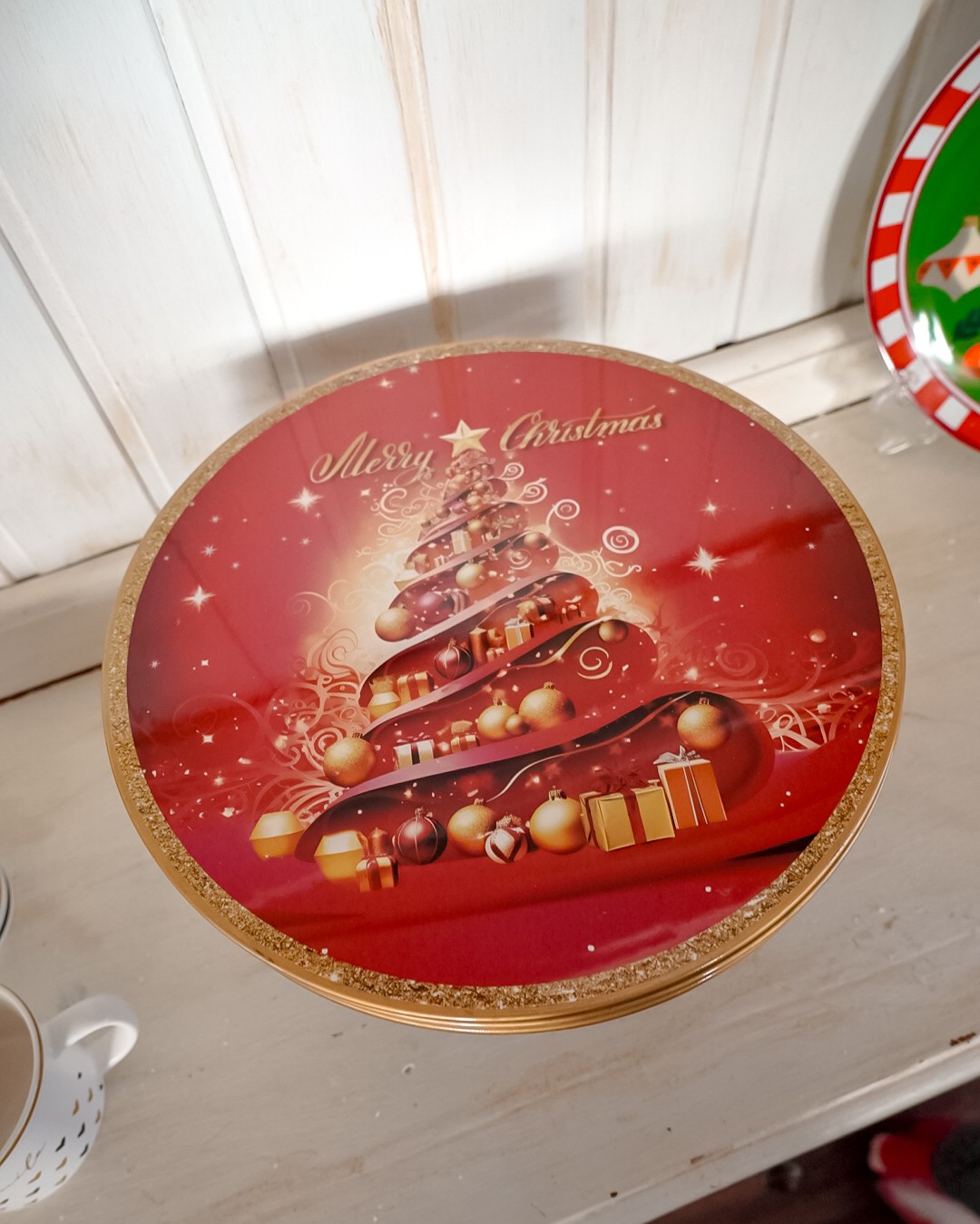 L’alzata riproduce disegni prettamente natalizi, perfetta per dolci o panettoni. Si monta con una vita centrale che collega alzata e piatto. facilissimo il montaggio.