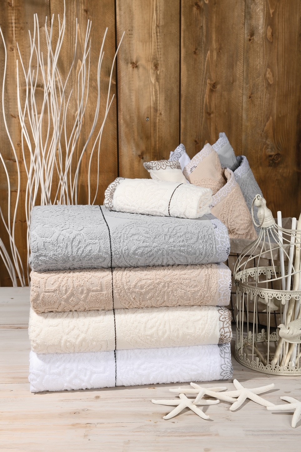 Set asciugamano Viso+ospite in Cotone Jacquard da 450gr, Linea DASI di Biancaluna.