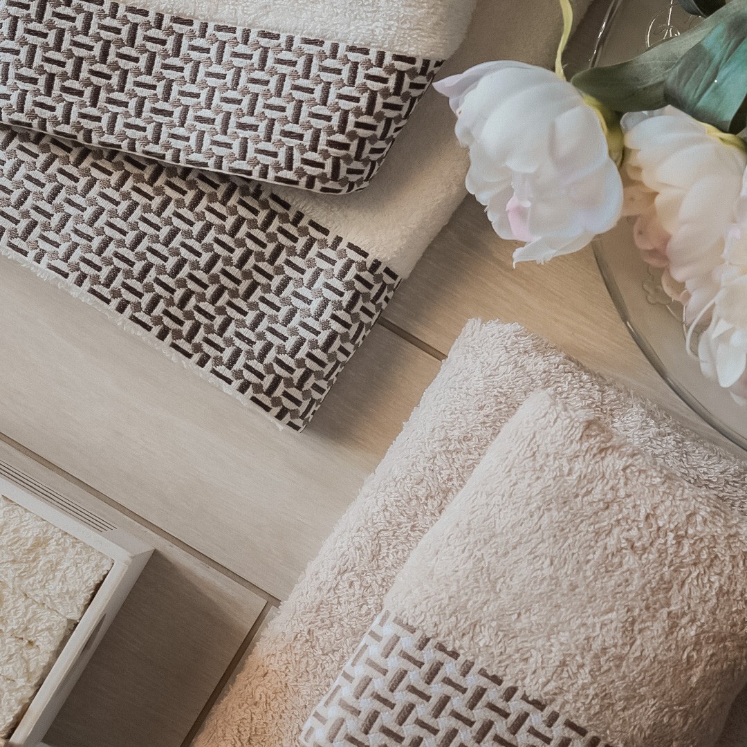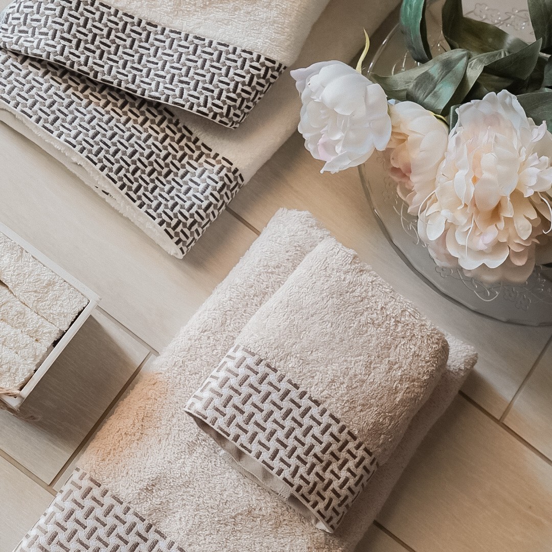 Set asciugamano Viso+ospite in Cotone Jacquard da 450gr, Linea Momi di Biancaluna.