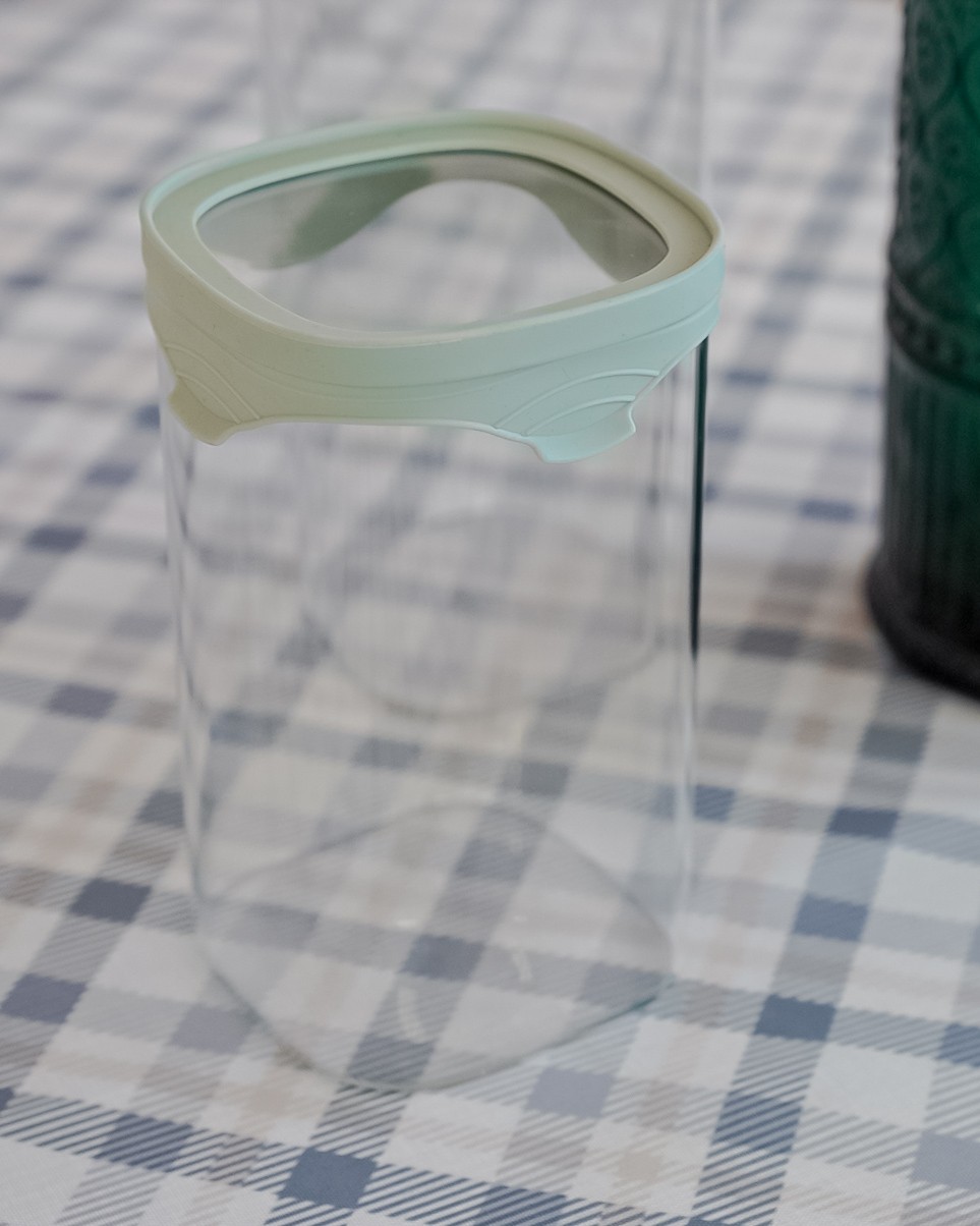 La linea Zero Waste di Tognana segue il trend del declutting e della riorganizzazione degli spazi per zero sprechi: contenitori e barattoli in vetro di ogni tipo e dimensione rivoluzioneranno il tuo quotidiano per ottimizzare la tua dispensa e per la conservazione dei cibi anche fuori casa. Questo barattolo quadrato da 1000 cc dotato di coperchio ermetico verde in silicone è ideale per conservare qualsiasi alimento e può essere abbinato agli altri barattoli dello stesso colore di dimensioni diverse per una dispensa organizzata e tono su tono. Sono disponibili anche barattoli e contenitori della stessa linea dal coperchio grigio.