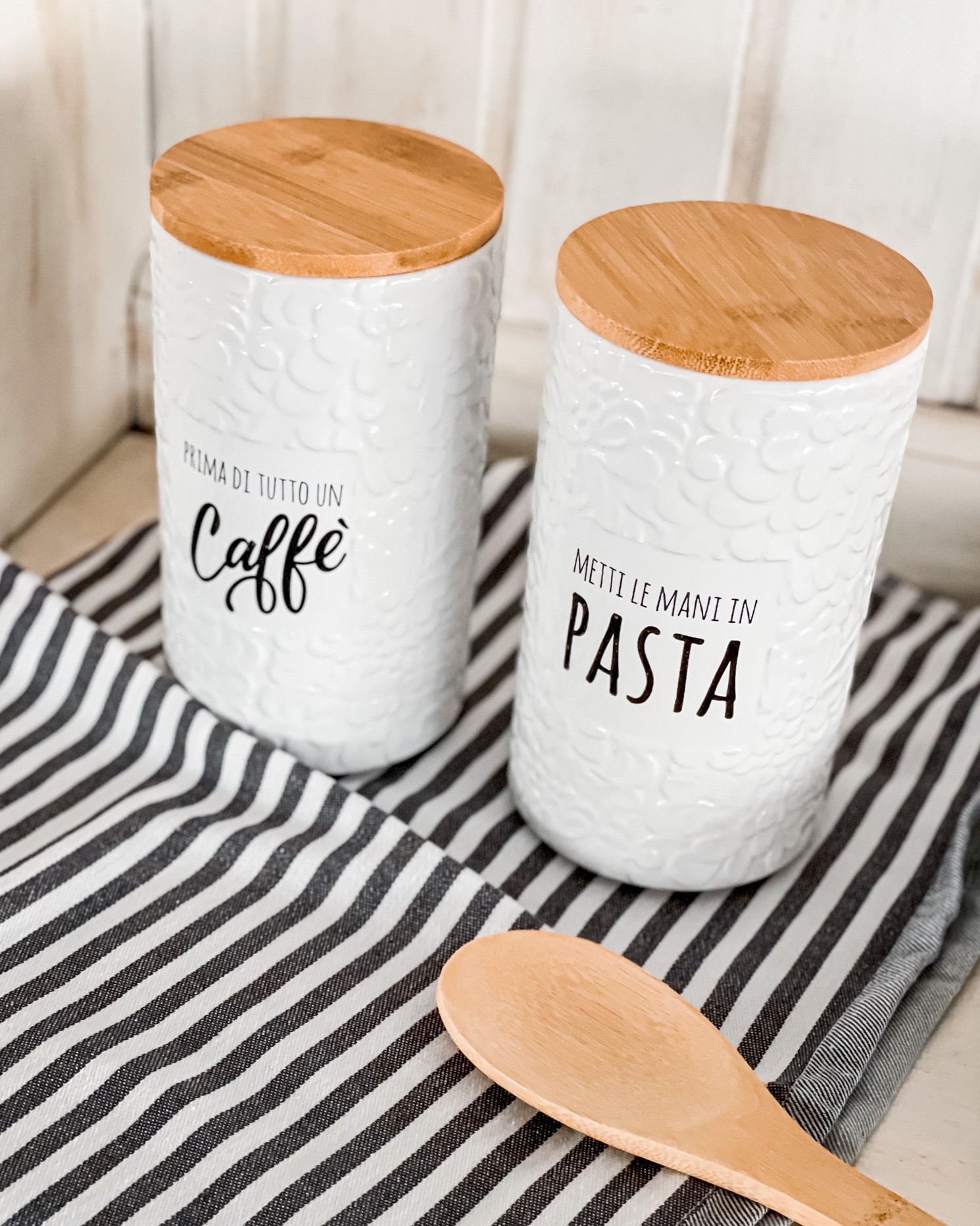 Barattolo Per Caffè o Per Pasta Rich Con Scritta Simpatica Bianco o Tortora AD STAR