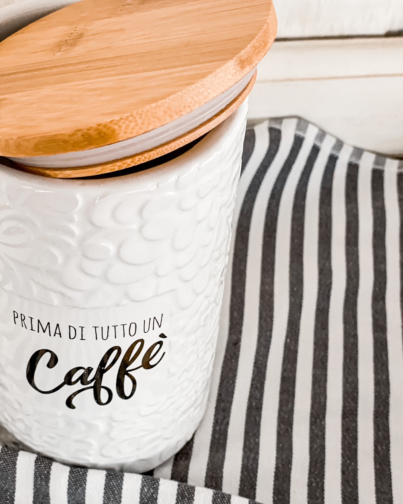 Barattolo Moderno in Ceramica Enjoy Coffee con Coperchio in Legno e dettagli in oro