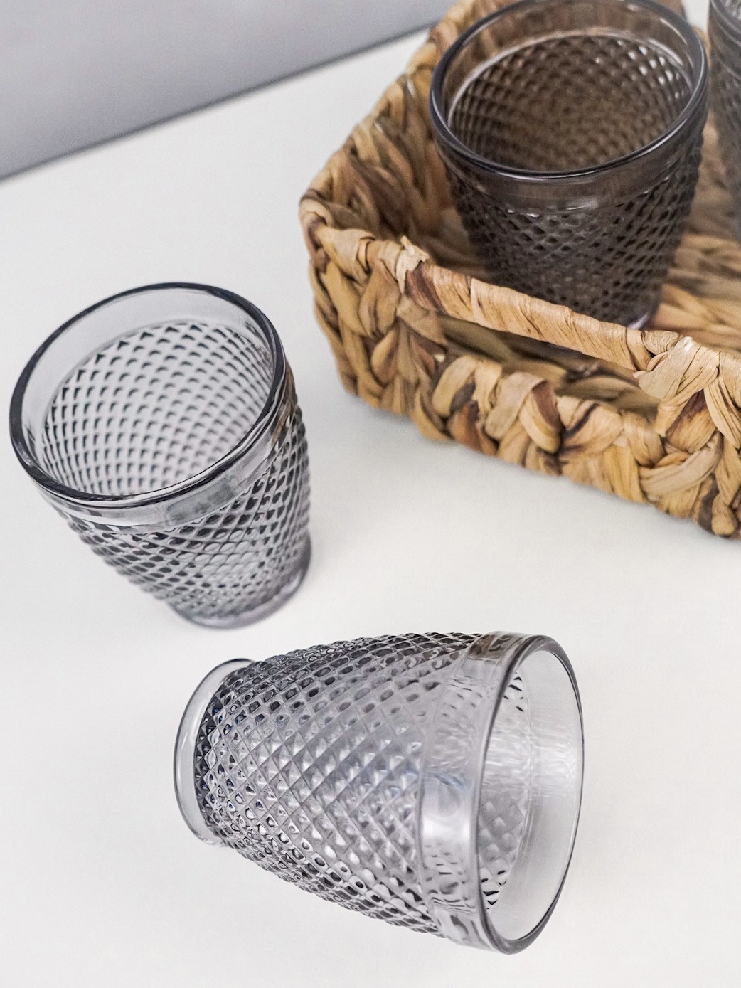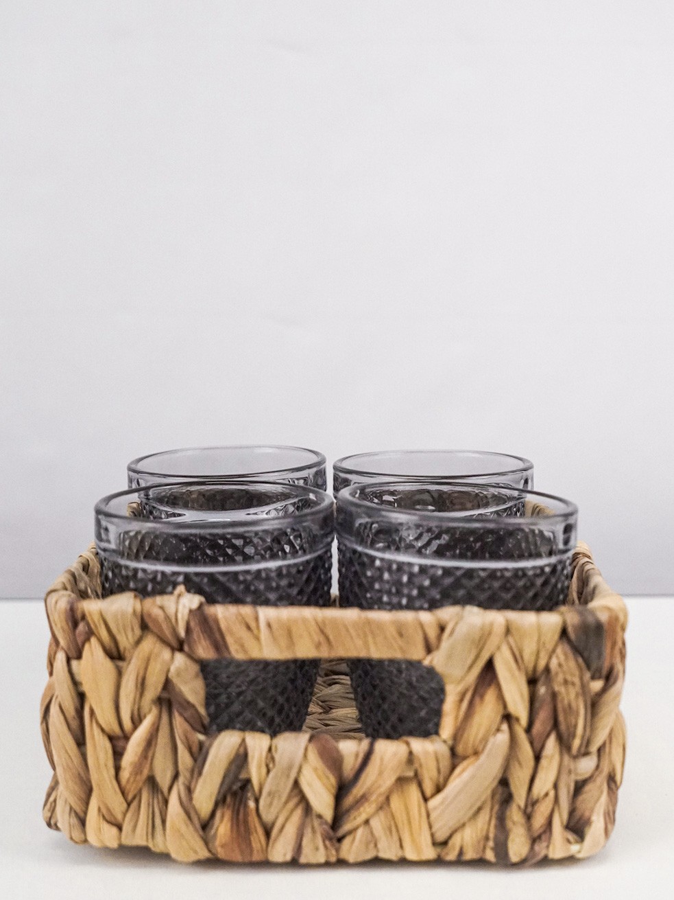 Bicchieri in Vetro 4 Pezzi con Vassoio in Vimini