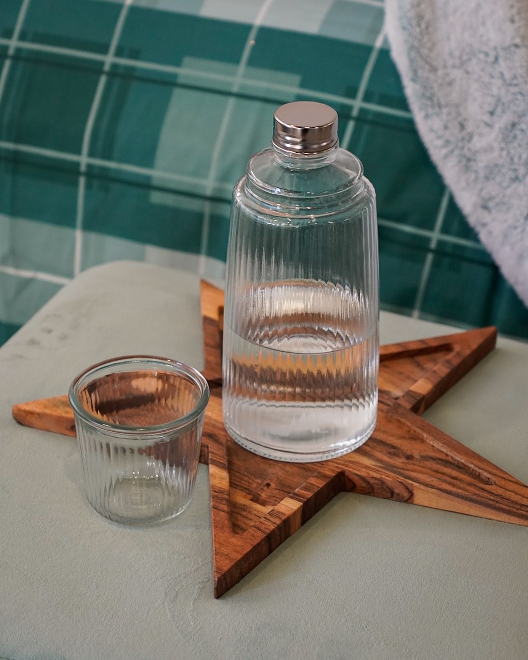 Sei da bottiglia sul comodino ma odi avere in bella vista la bottiglia dell’acqua? Quest’idea allora è per te: bottiglia in vetro con tappo che in realtà è un bicchiere. Bella ed elegante, per chi non ama lasciare le cose al caso.