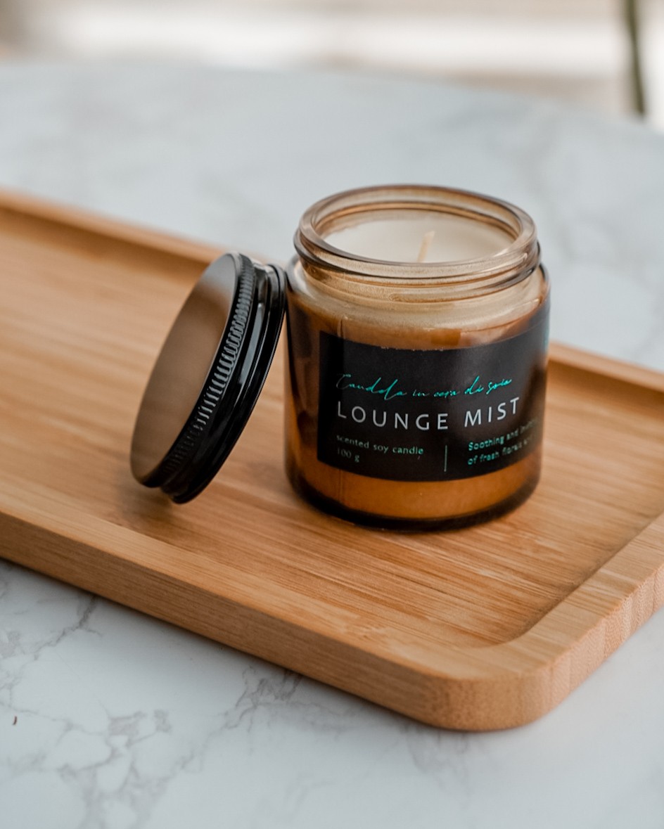 Questa candela ha un packaging che ricorda le creme viso, contenitore in vetro color ambra e tappo evitabile. Cera di soia.