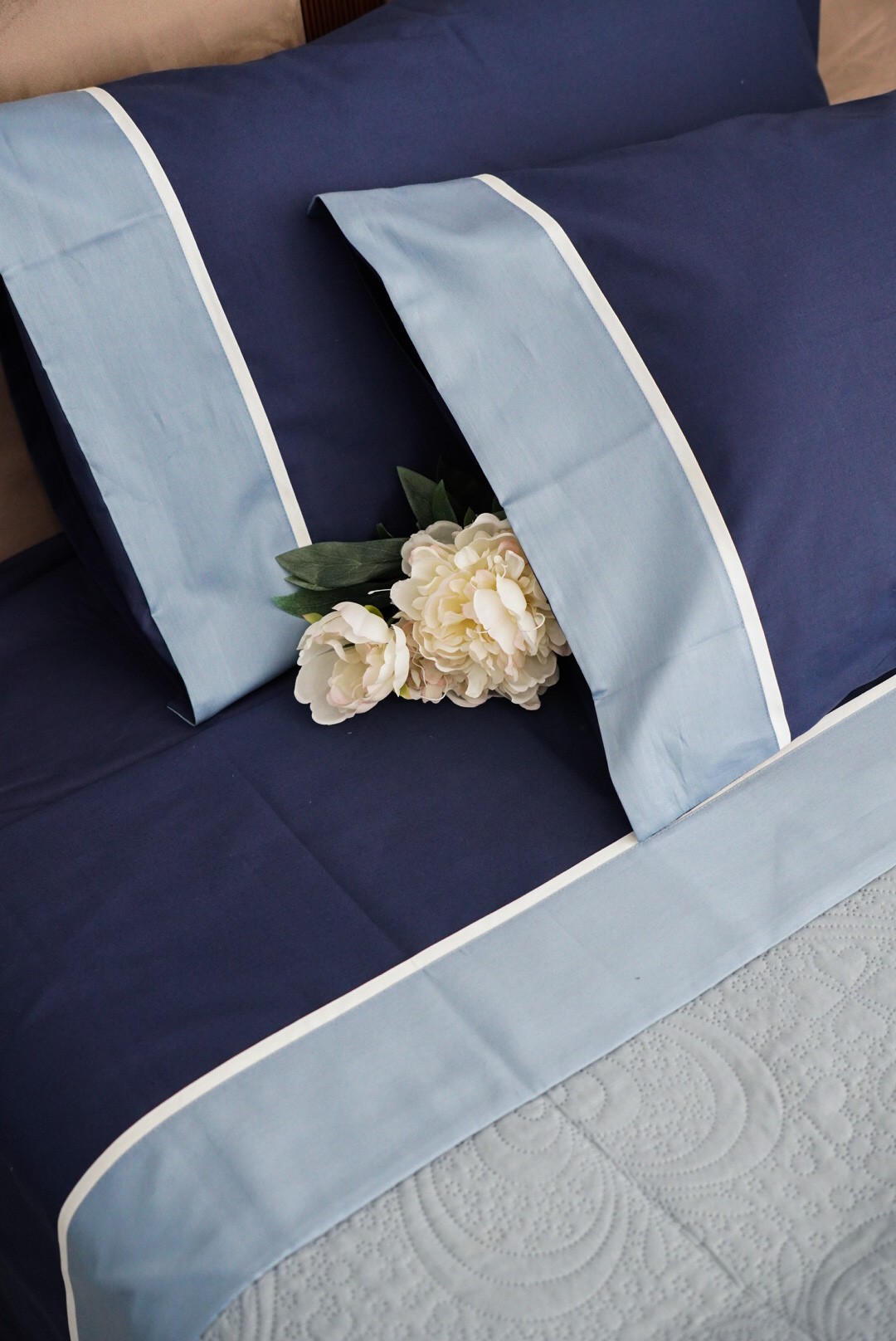 Completo lenzuola ENEAS, 100% cotone, con bordo in raso della collezione di Nazareno Gabrielli