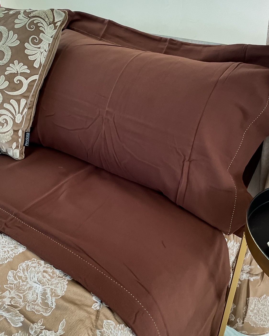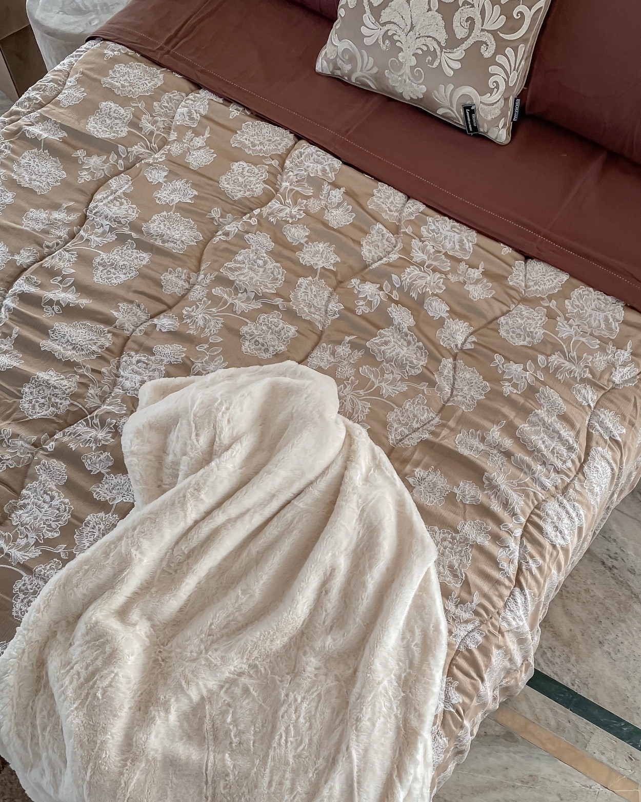 Questo completo letto matrimoniale è del marchio I Sogni. Morbido e caldo è realizzato in flanella ricamata, adatto per l’inverno. Nella colorazione del marrone. Il completo comprende il lenzuolo piano, lenzuolo con angoli e due federe a sacchetto.