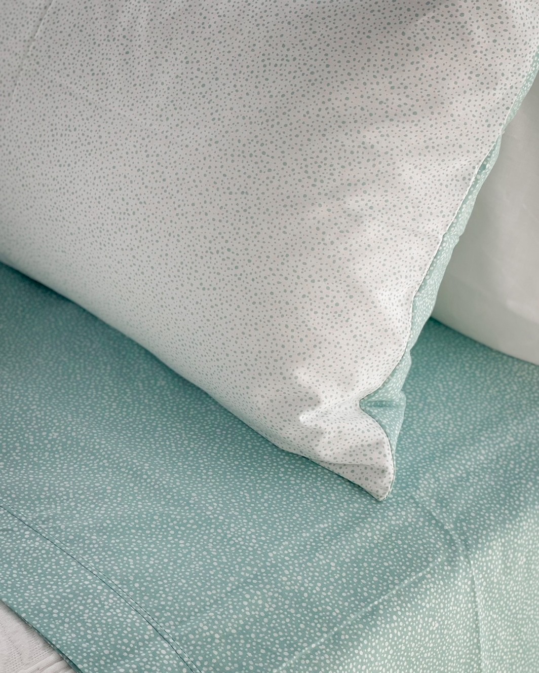 Il completo Lenzuola Jaq è un completo molto particolare, la coppia federe ha un lato di un colore e l’altro in contrasto, tutto il completo è caratterizzato dal motivo pois, il lenzuolo di sopra e colorato tinta unita con pois bianco e il lenzuolo con angoli è fondo bianco con pois colorati a contrasto.