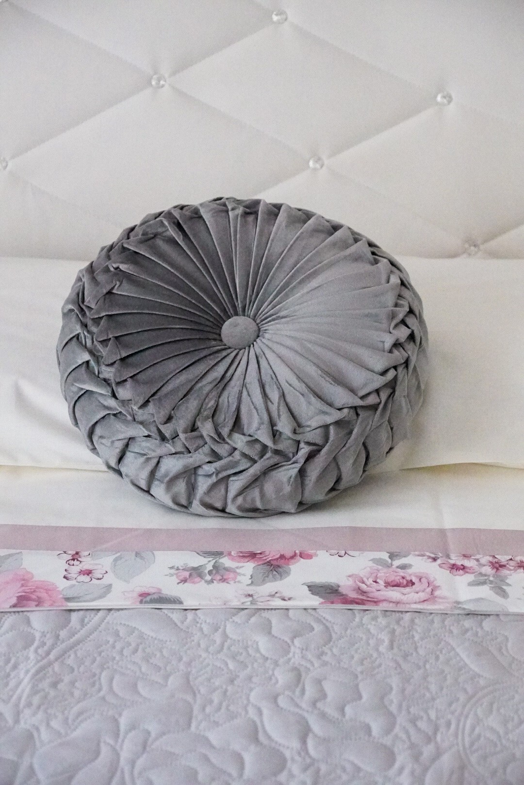 Completo letto Penelope con bordo in raso rosa con fascia floreale, della collezione Nazareno Gabrielli.