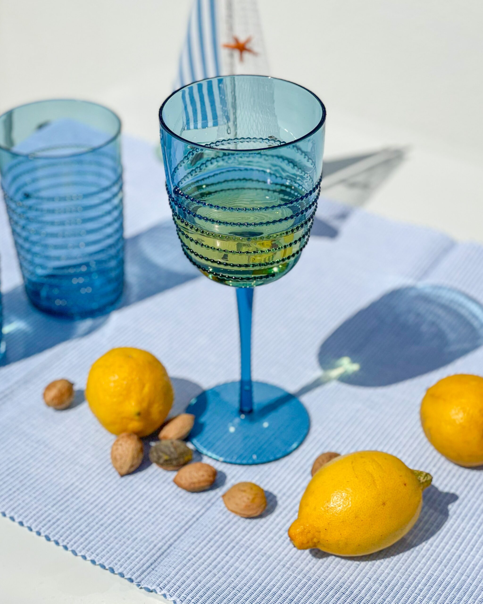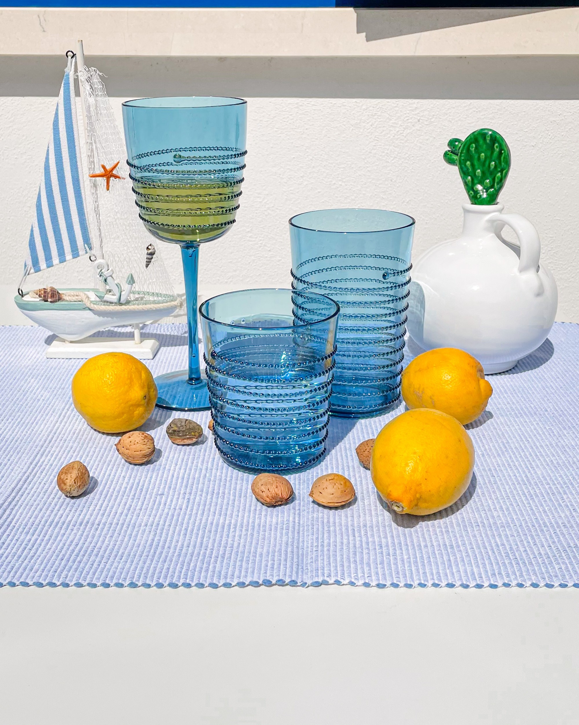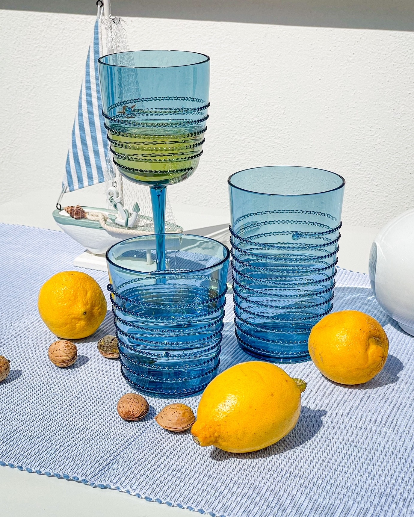 Baciati dal sole danno il meglio di sé, con il loro azzurro splendente, in plastica acrilica resistente agli urti. Leggeri e Versatili. Ideali in barca o in giardino, per chi non rinuncia ad uno stile elegante e raffinato sempre.