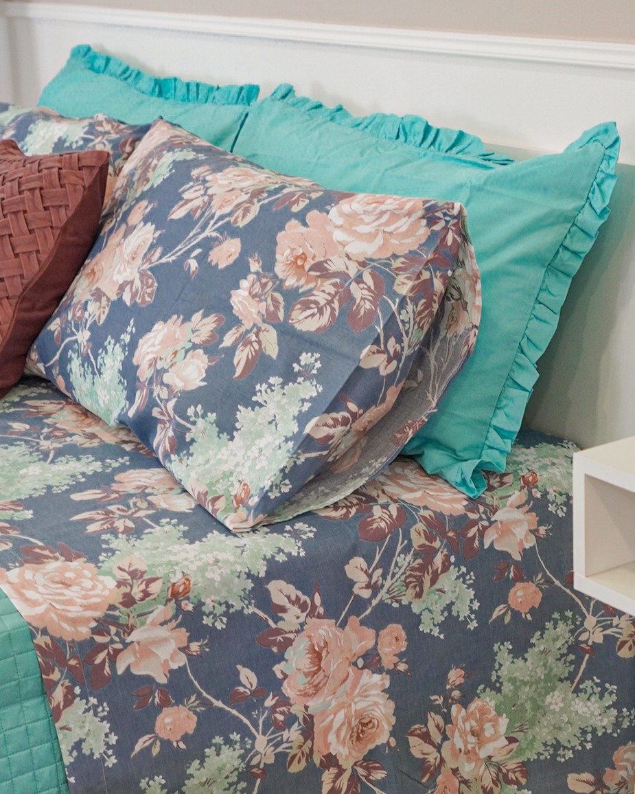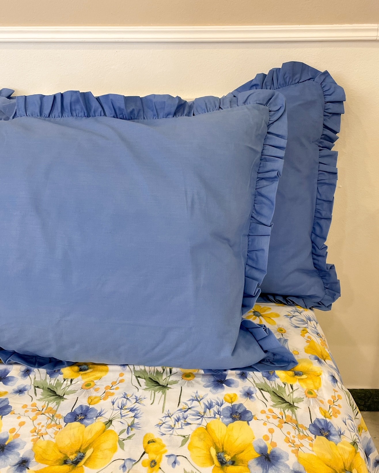 Ideali per chi ama le doppie federe sul letto, questa coppia federe in cotone ha apertura a sacchetto e rouches.