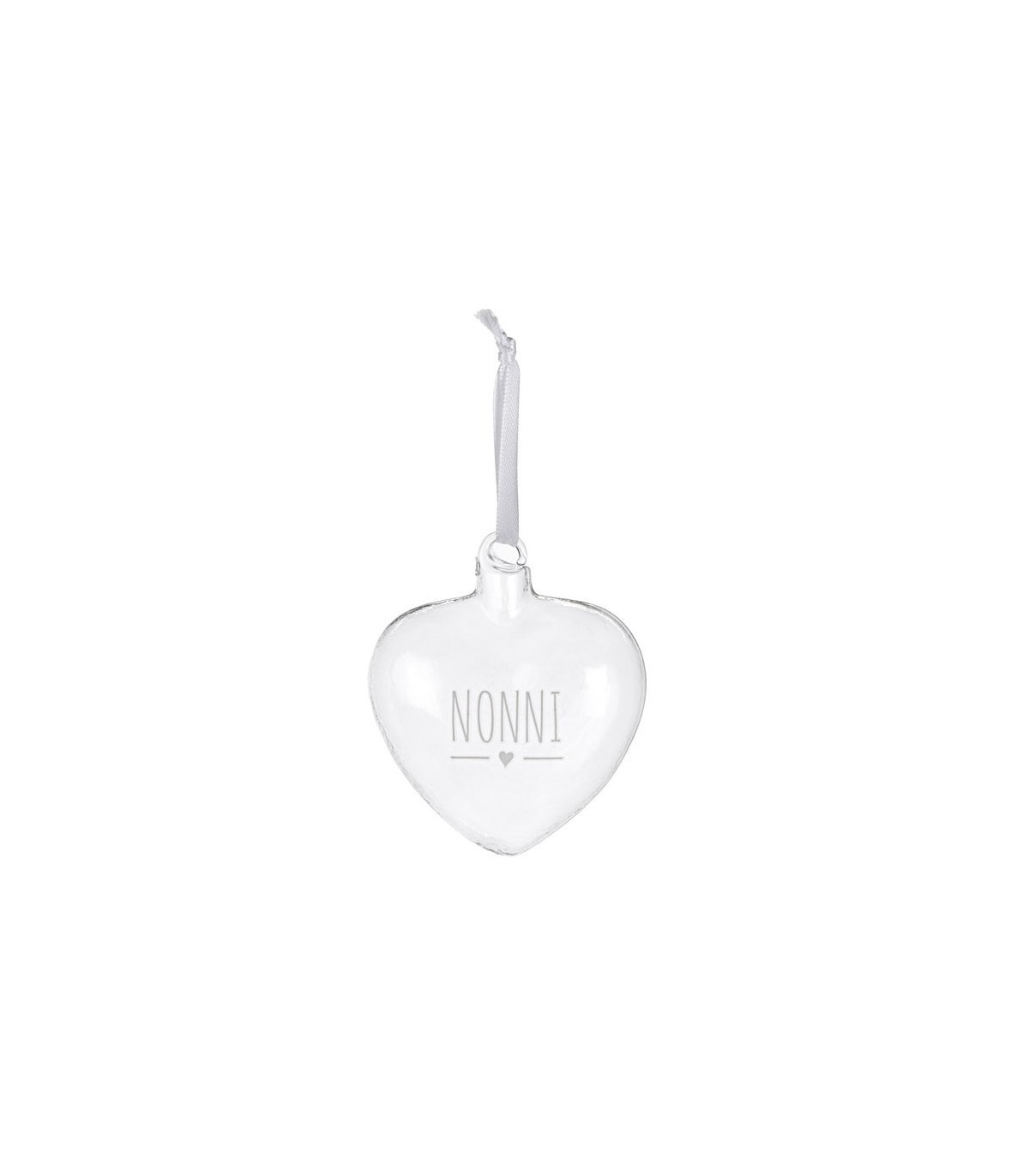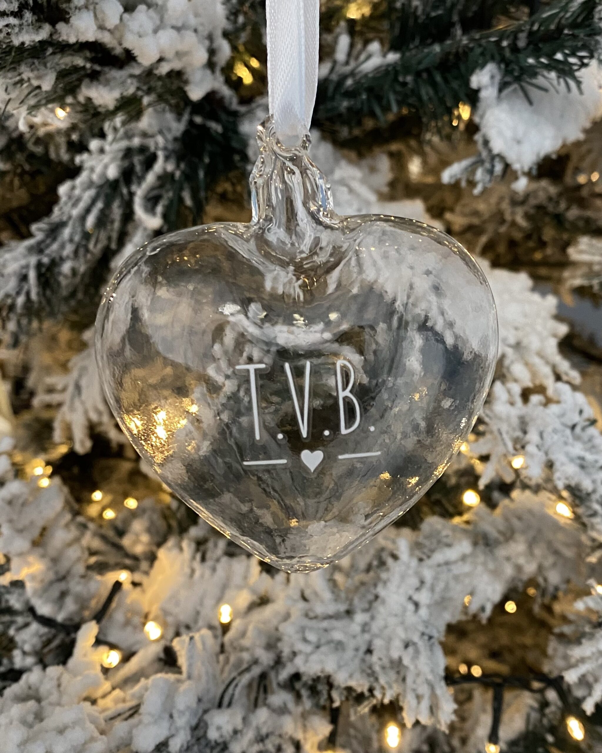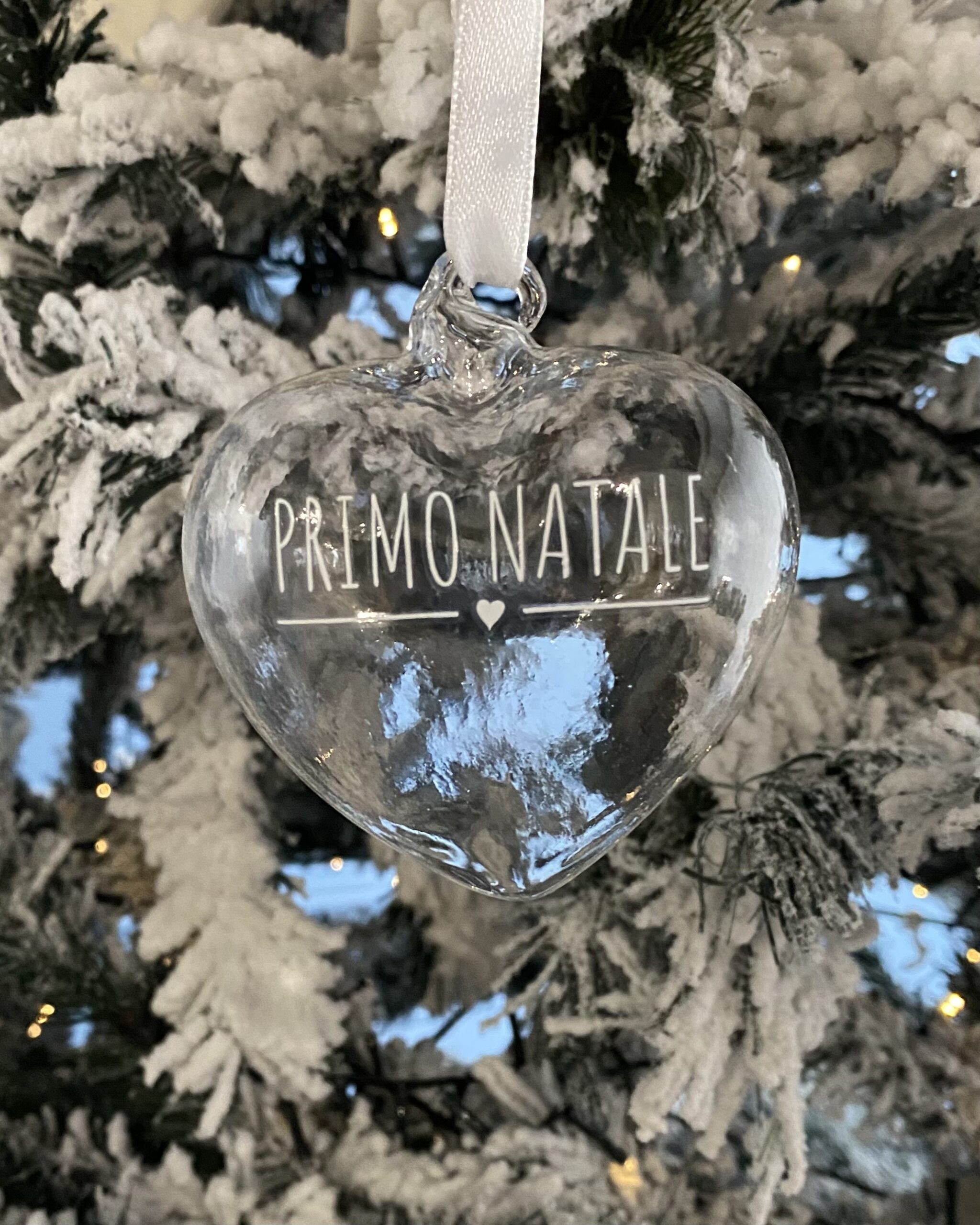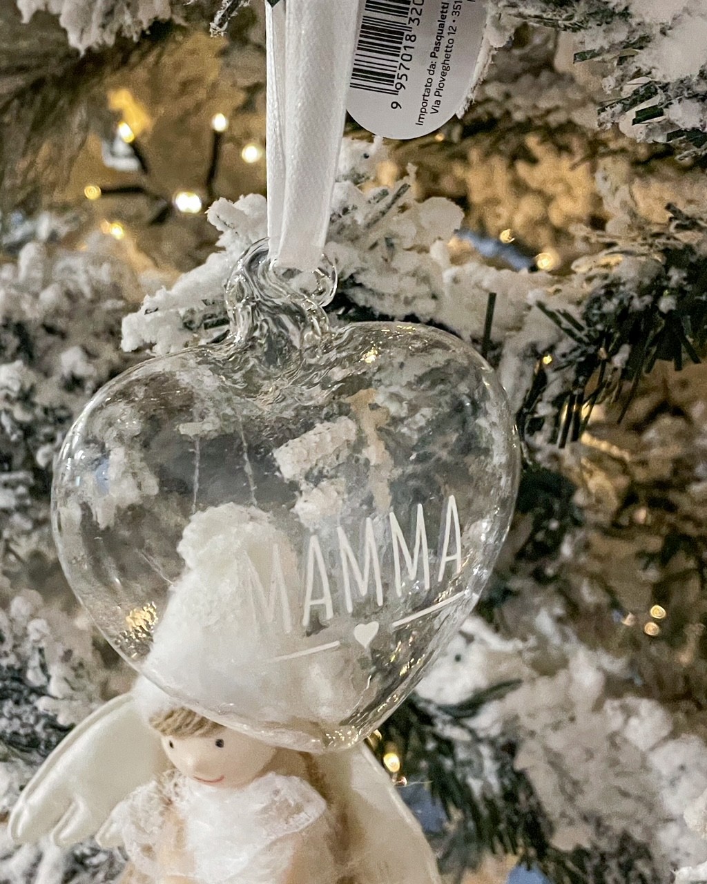Cuoricino in vetro borosilicato con scritta, scegli la tua preferita per addobbare il tuo albero o per regalare a chi vuoi bene un’emozione.
