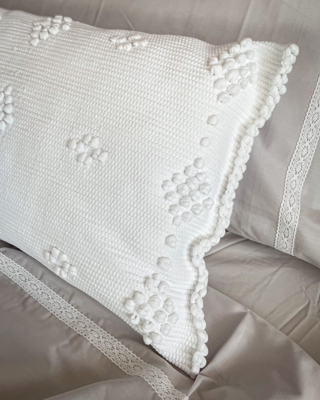 I Cuscini Puxados, disponibili in due varianti disegno, sono completamente lavorati a mano su telai tradizionali e, per tale ragione le loro dimensioni potrebbero variare di qualche millimetro.