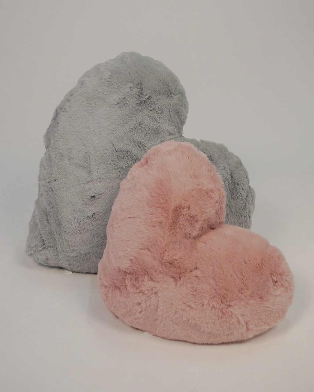 Morbido Cuscino a Forma di Cuore Rabbit. Realizzato in morbida microfibra con la parte superiore pelosetta. Disponibile in 3 Colori diversi: Grigio, Bianco e Rosa. Ideale per arredare la tua zona living, la camera da letto o la Cameretta dei tuoi Bimbi.