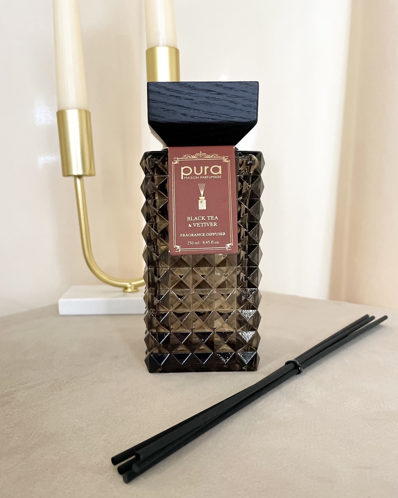 Diffusore Pura di Fragranza Black Tea e Vetiver Contenitore Elegante in Vetro Tappo in Legno250 ml