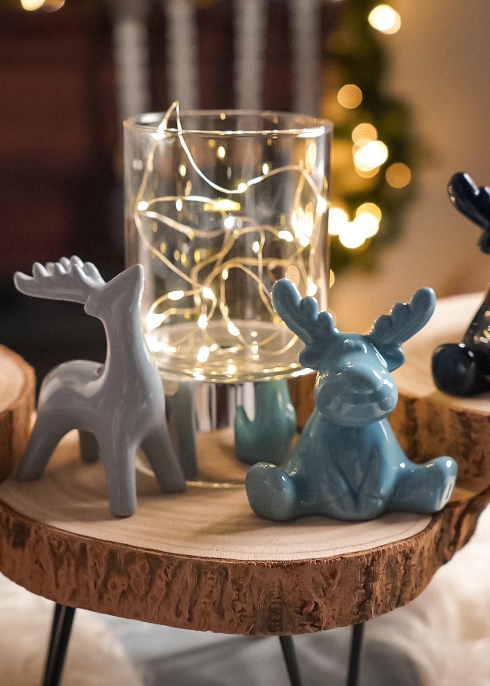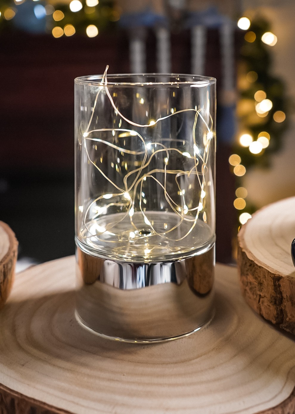 Lanternina con luci led (luci calde) con base in metallo argentato, funziona a Batterie (tasto On/Off).