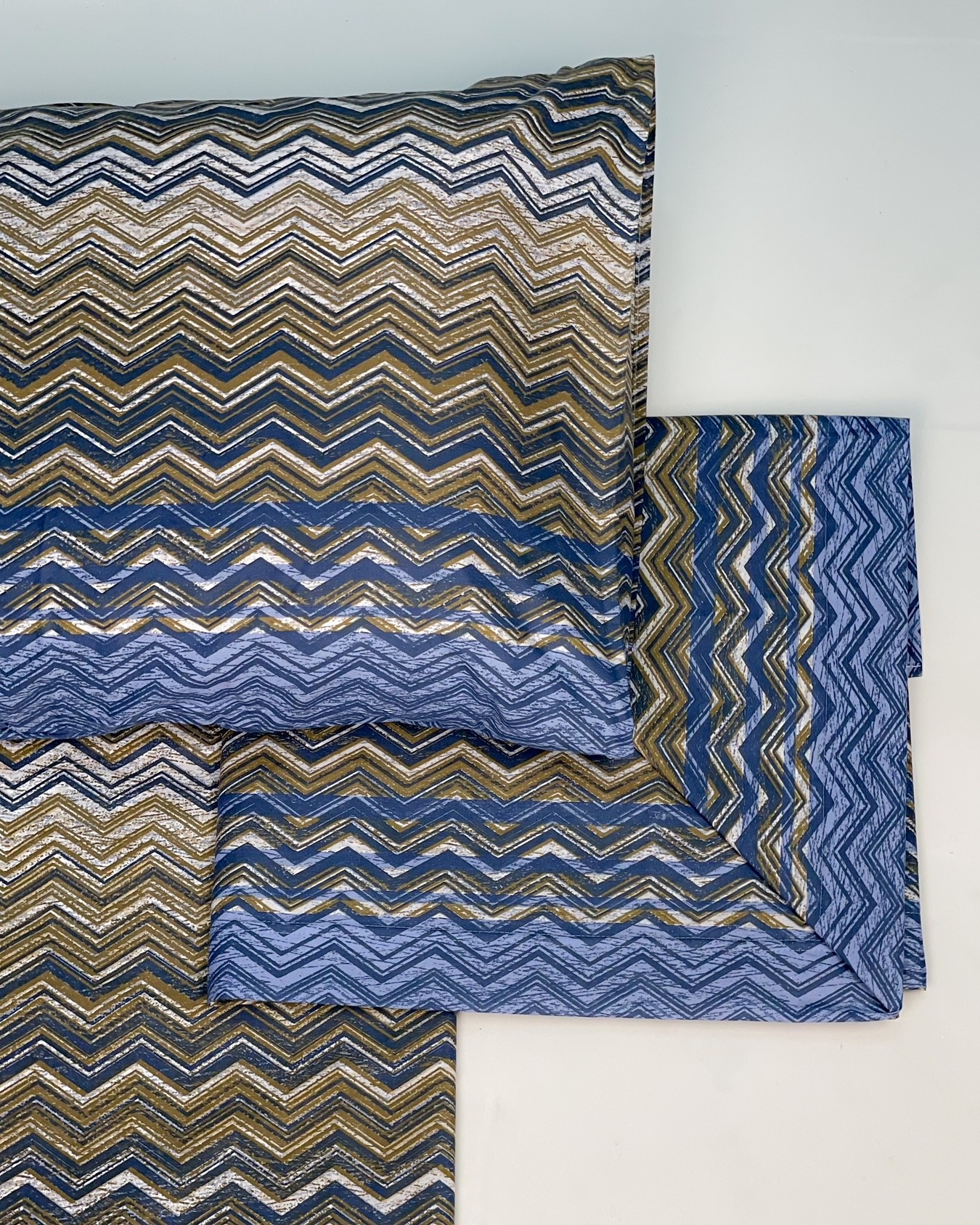 Lenzuola Stripe Tortora e Blu Motivo Geometrico Zig Zag
