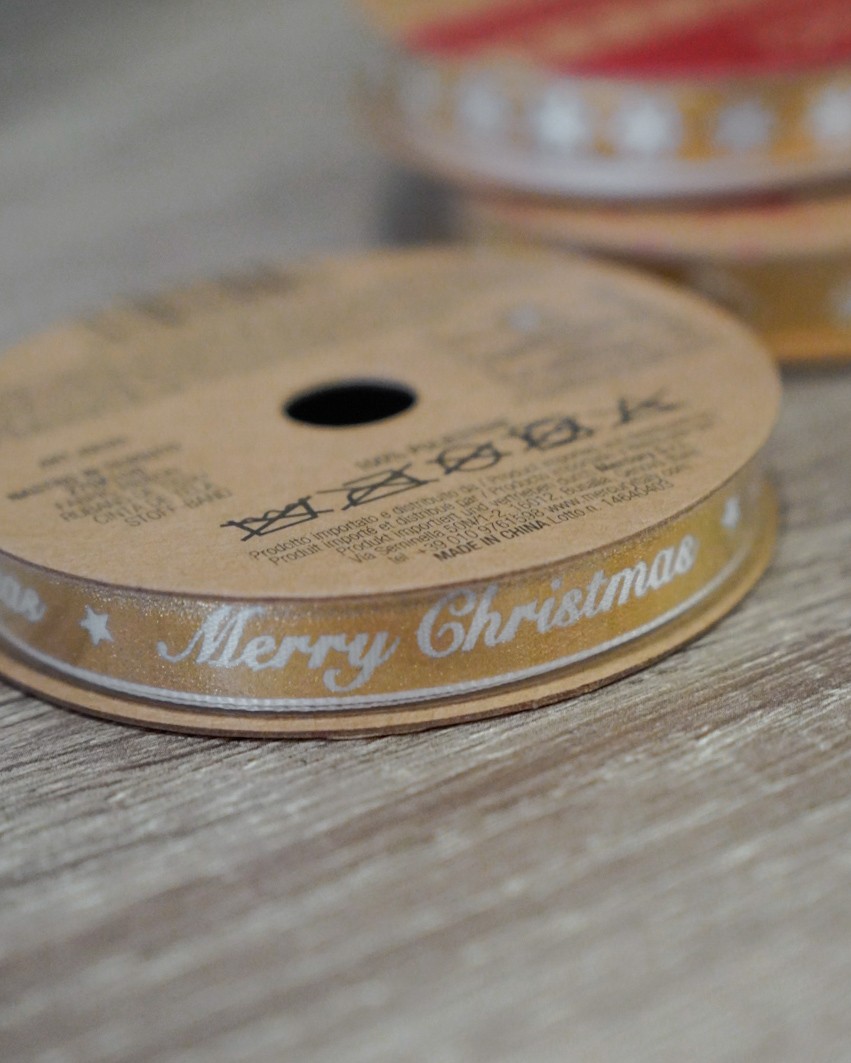 Il nastro decorativo vi aiuterà a decorare i vostri pacchi regalo, ma anche la vostra mise en place o quelli oggetti decorativi che potrete utilizzare nella vostra casa. Fondo oro e puoi scegliere tra tre decorazioni bianche, per un contrasto elegante e delicato.
