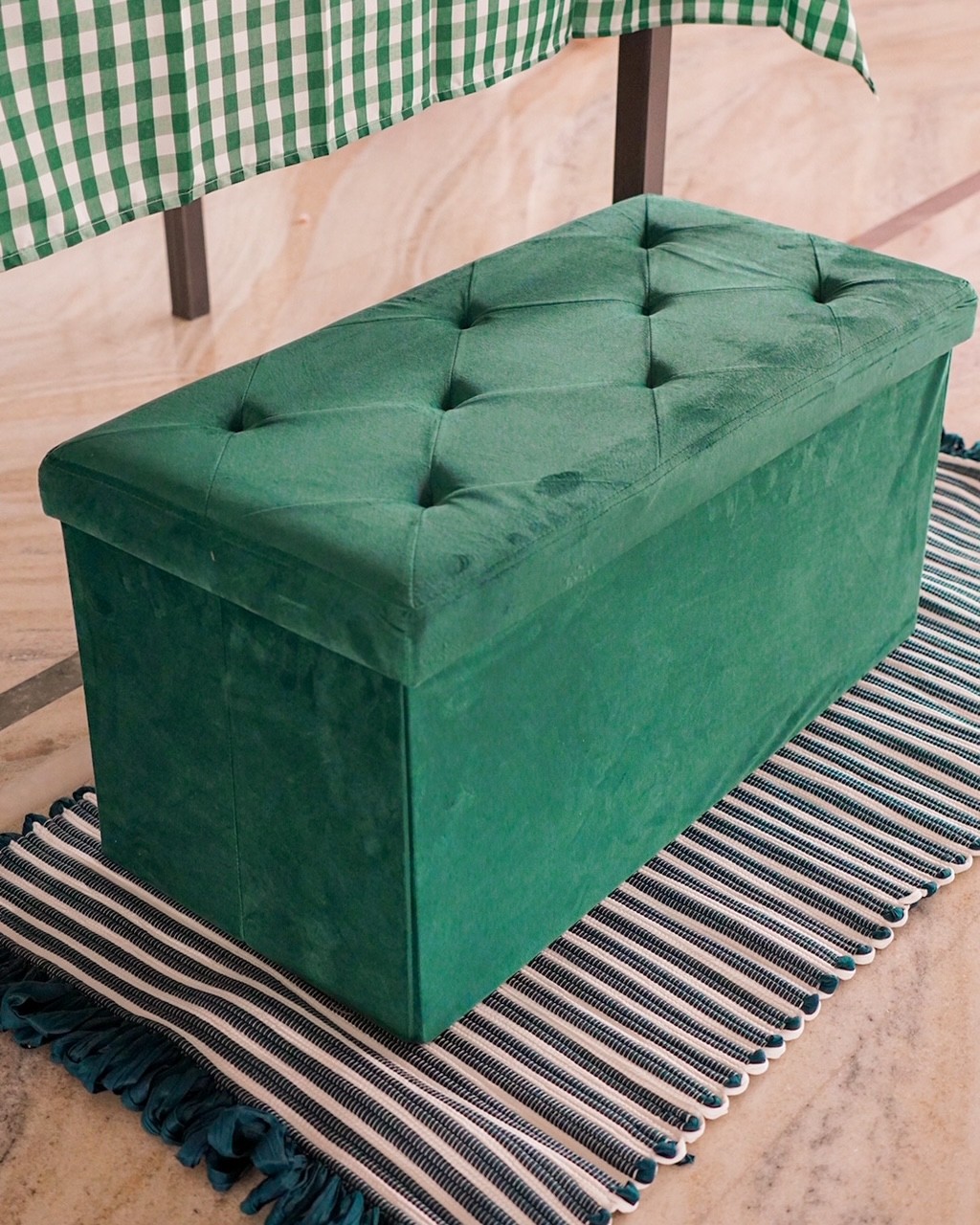 Una panca contenitore Ottoman, in velluto, dotata di coperchio 8 punti.