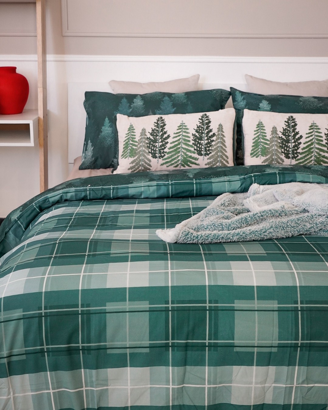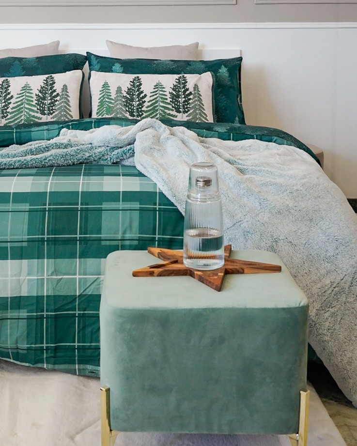Parure Copripiumino Matrimoniale Stampa Digitale Double Face Quadrettato e Alberi