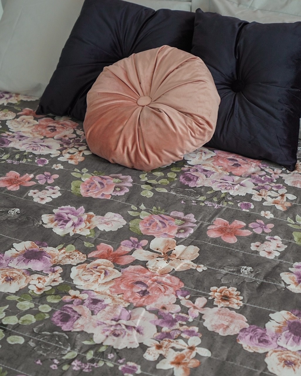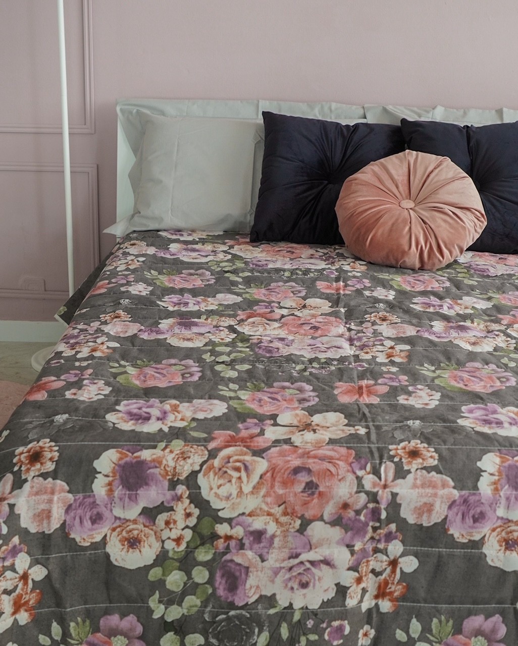 Trapuntino Primaverile Cherie Double Face Variante 2 Nero o Tortora Singola Piazza e Mezza o Matrimoniale