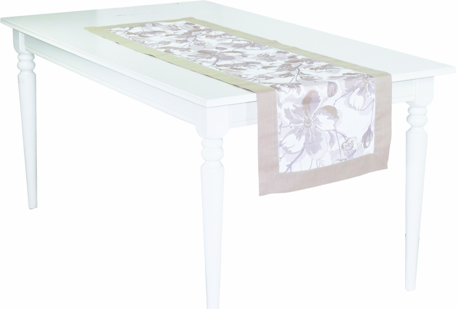 Runner in lino e cotone con stampa floreale digitale e orlo a giorno.