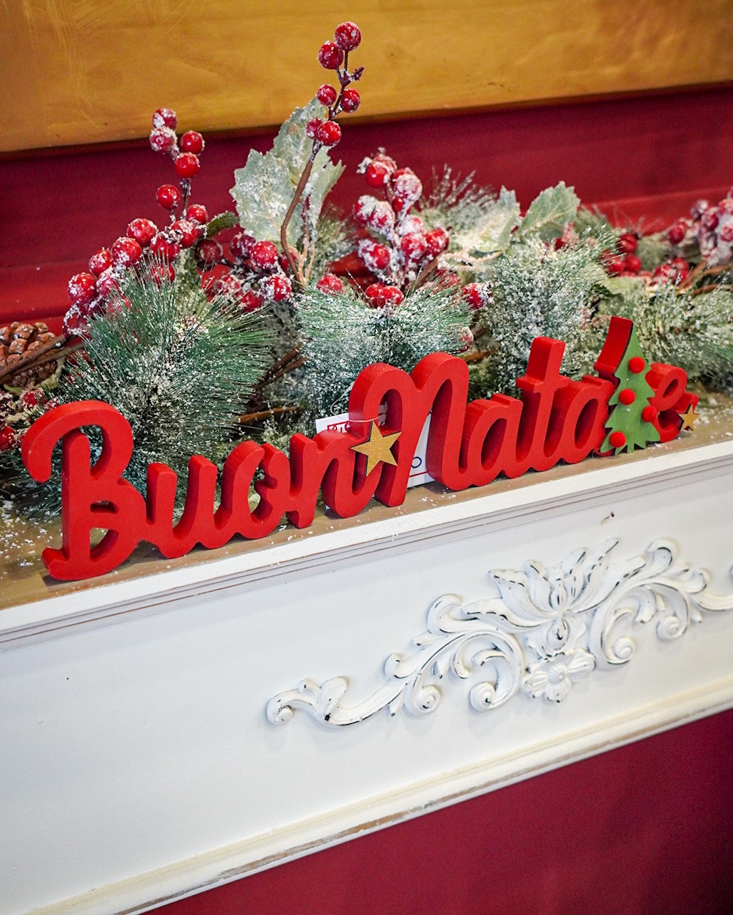 Scritta in Legno Buon Natale Rossa Con Alberello e Stella Mercury. Da appoggio.