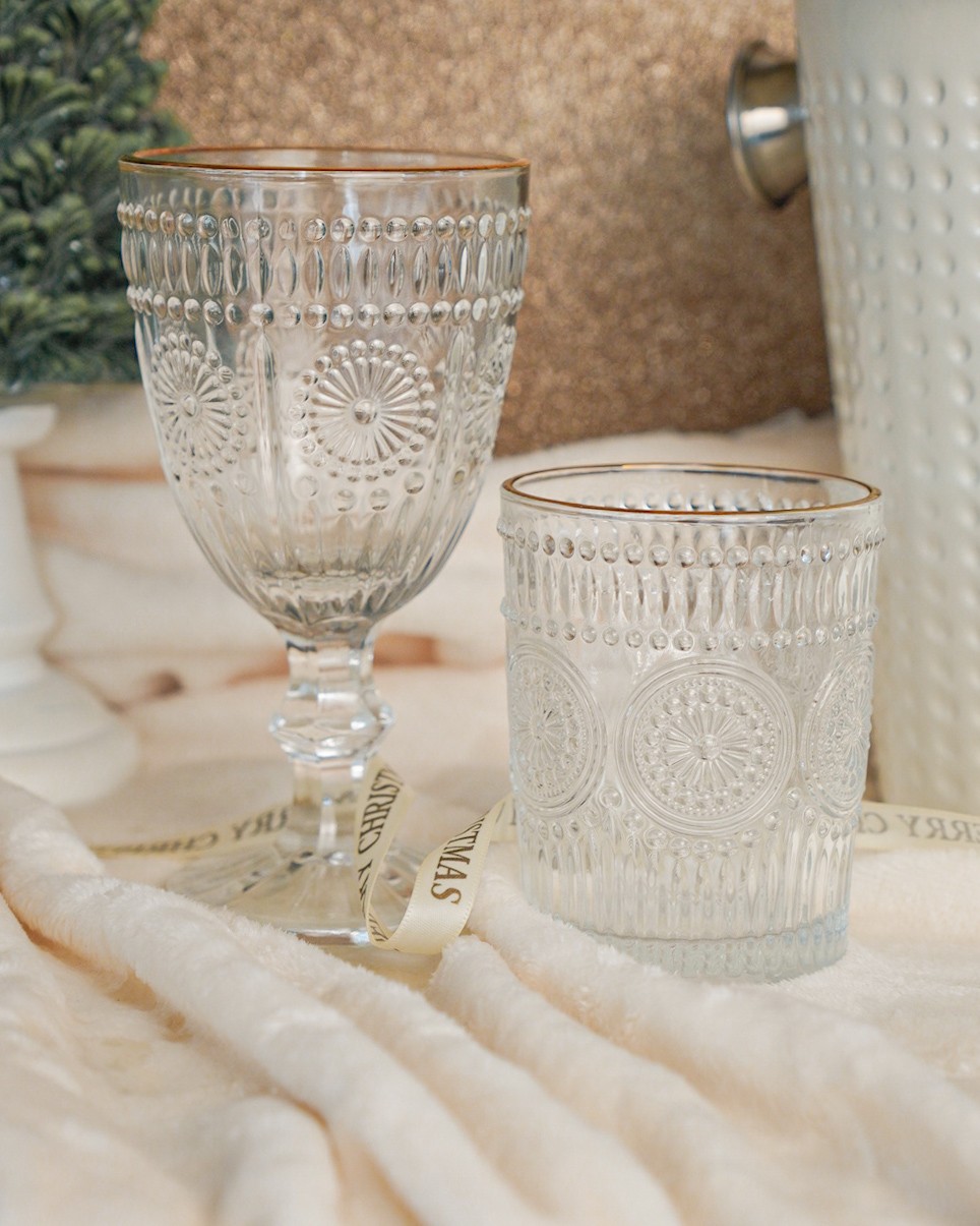 Set 12 Bicchieri Grace Trasparenti Con Filo Oro