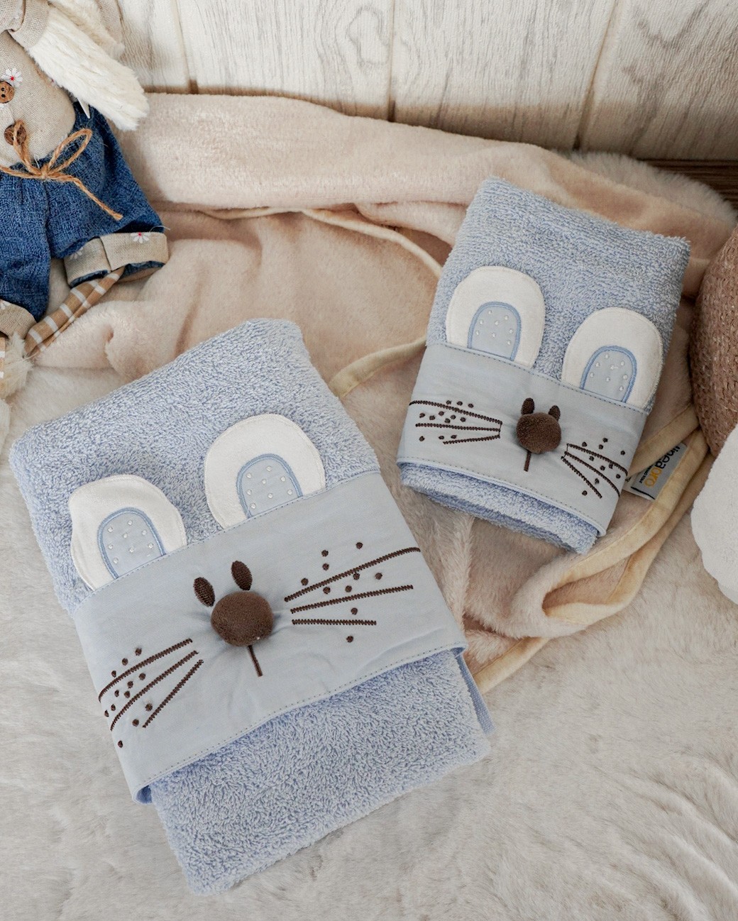 Set Asciugamani Rabbit Per Neonato Vingi Ricami