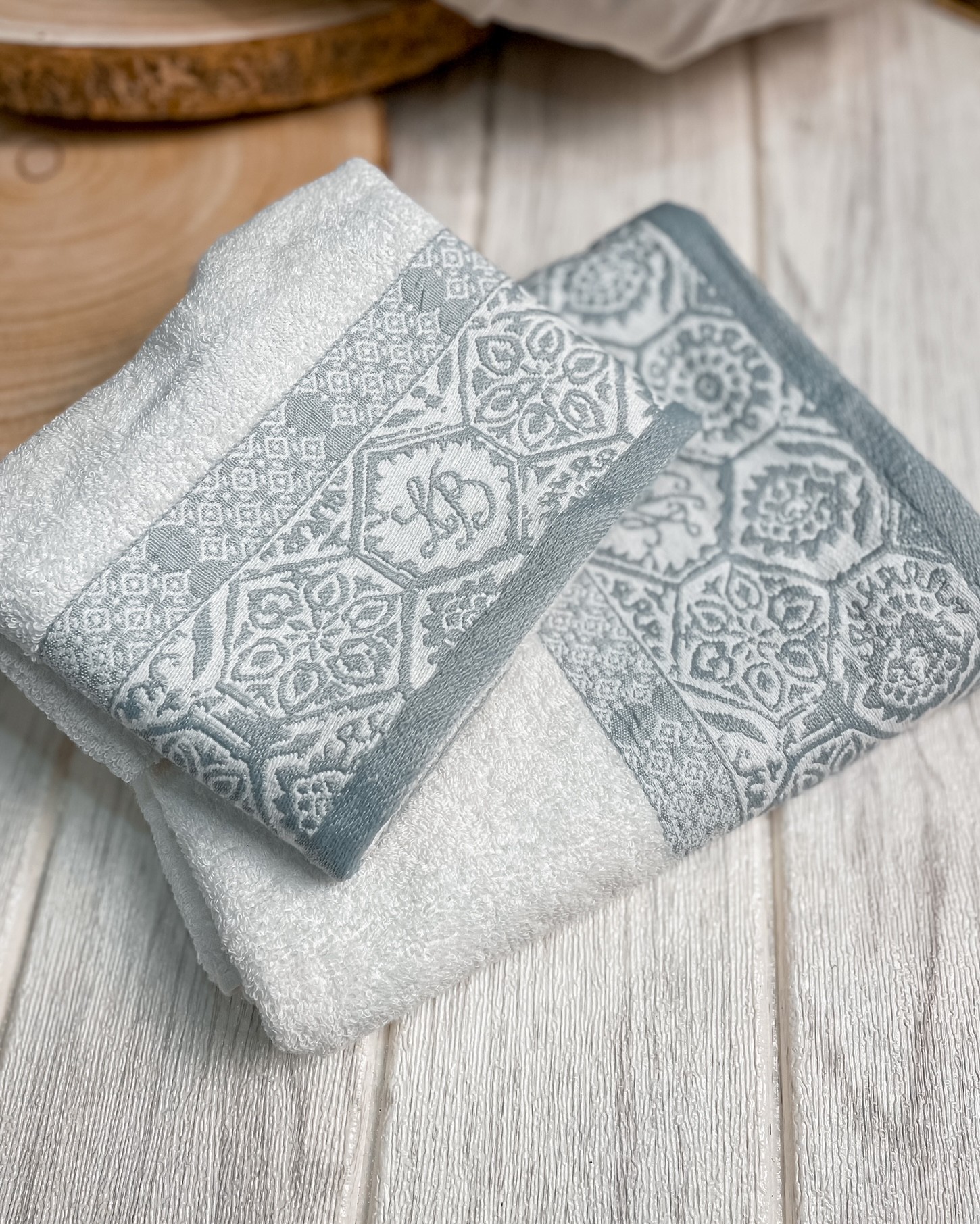 Set Asciugamani Flowers Viso e Ospite 100% Spugna di Cotone Vingi Ricami