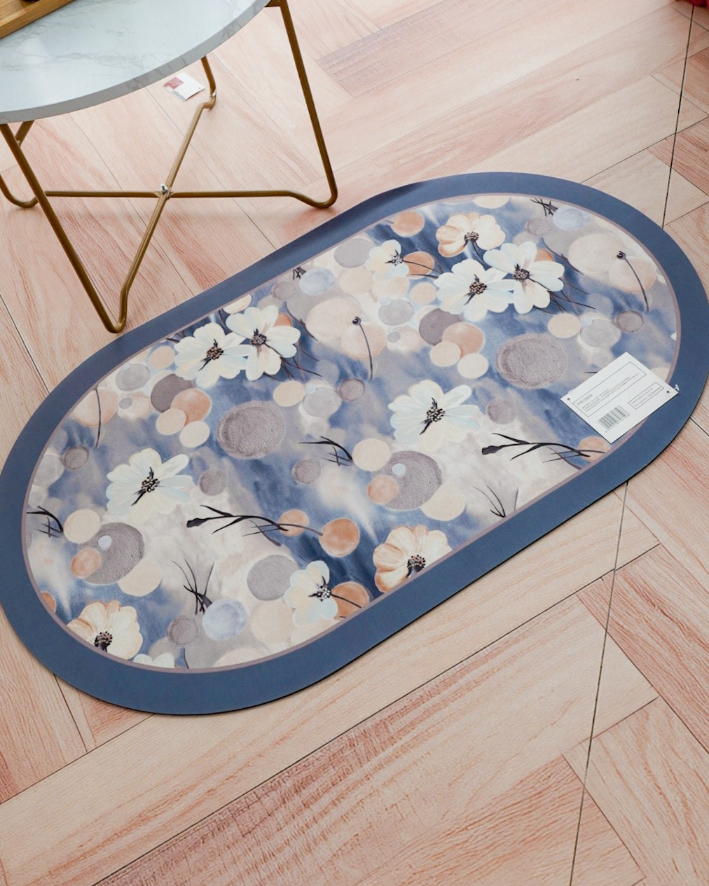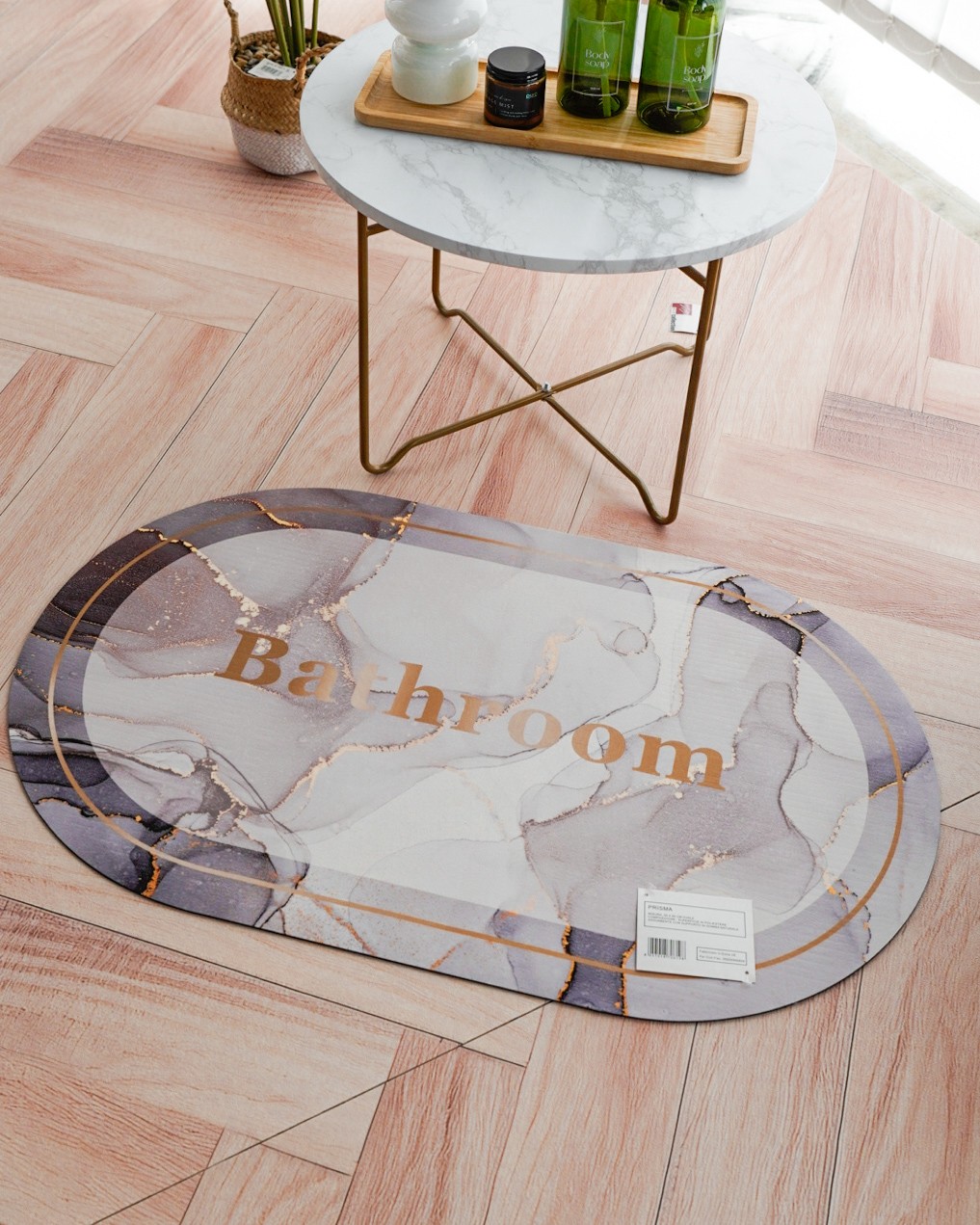 Tappeto da bagno con 10 fantasie molto moderne. Il tappeto si presenta con forma ovale, retro antiscivolo e parte anteriore con una superficie molto morbida al tatto e soprattutto assorbente, una caratteristica molto utile in bagno.