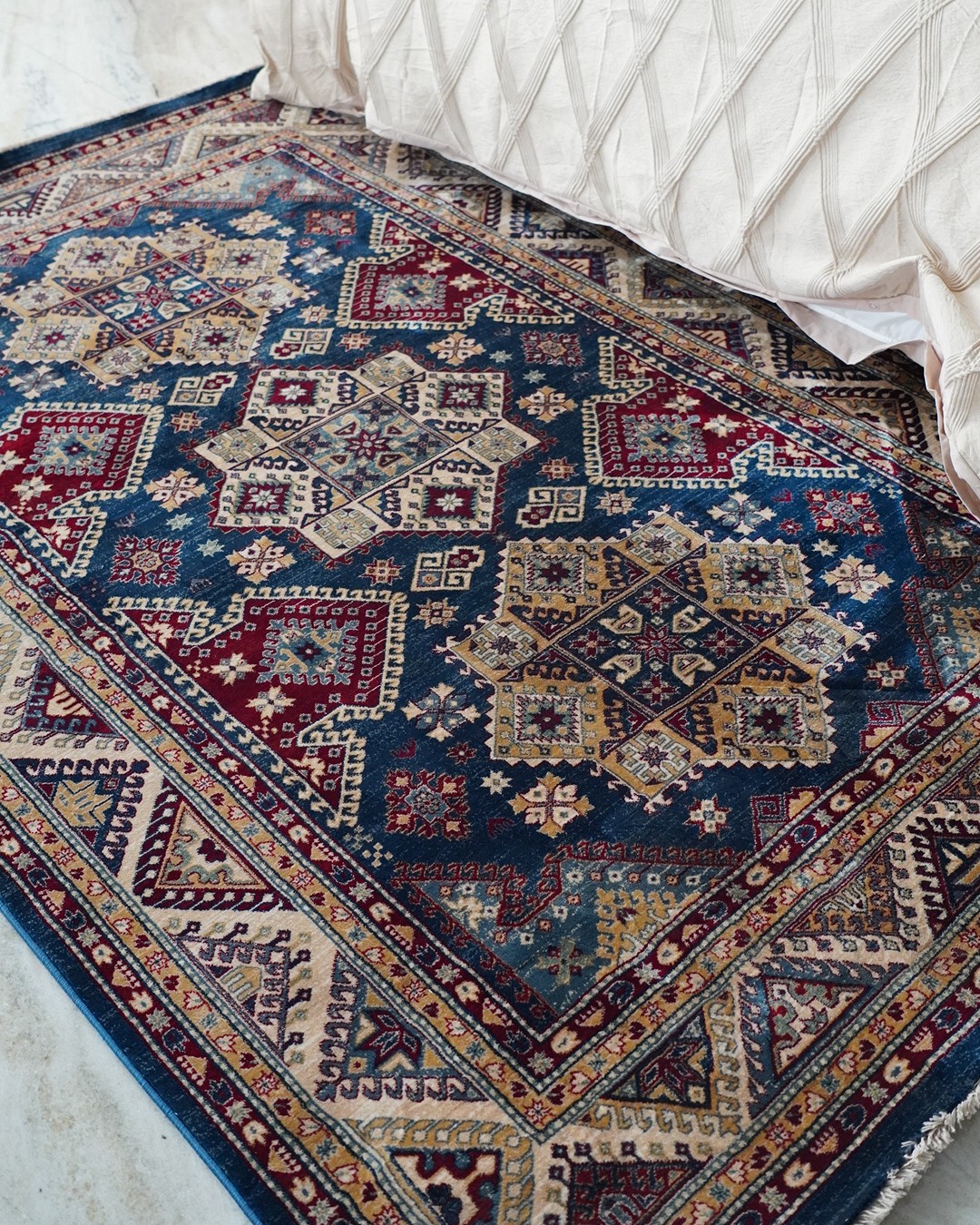 Recensisci per primo “Tappeto Kashan160x240 cm nei Toni Blu Beige e Rosso Classico con Frangia” Annulla risposta