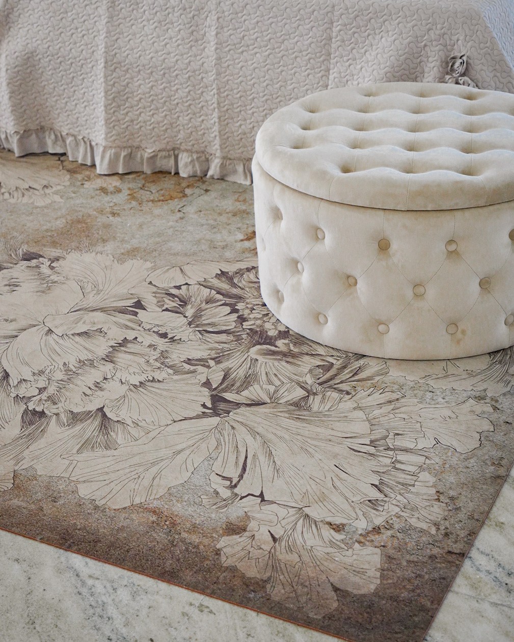 Tappeto Arredo Peonia Outdoor Nei Toni del Tortora Internopelle