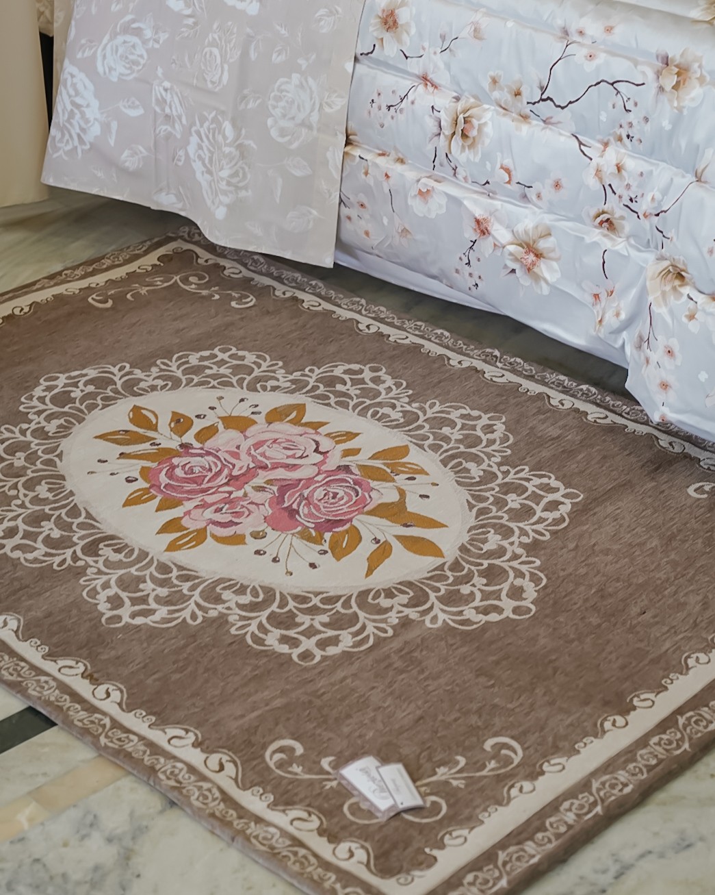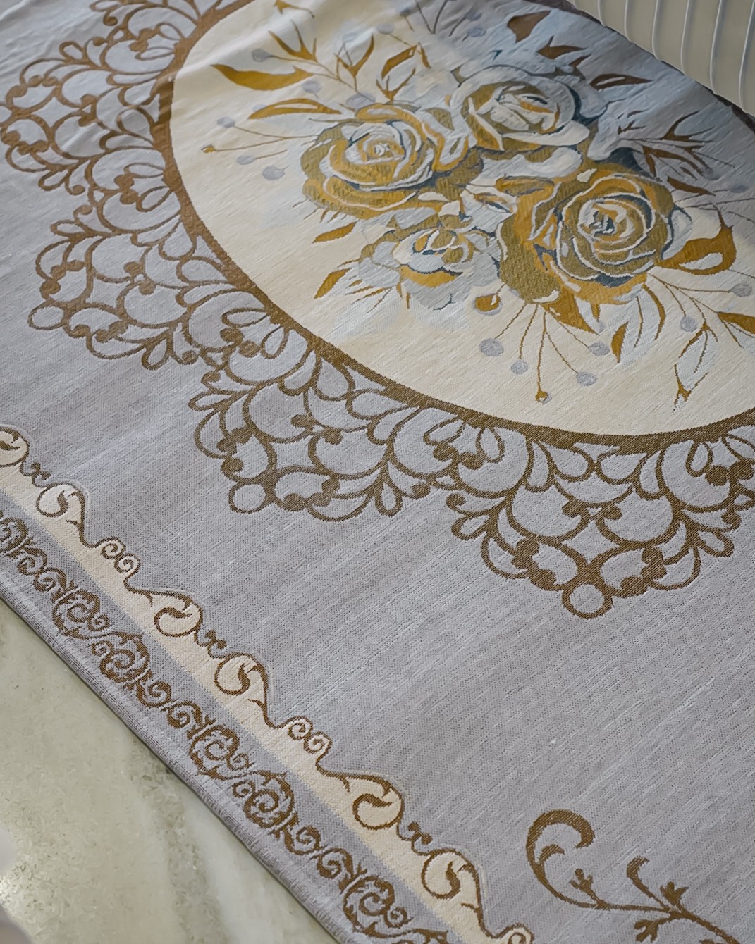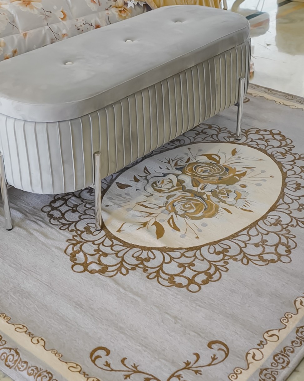 Il tappeto rettangolare Preziosa Home è un tappeto elegante, con sottofondo antiscivolo, jacquard piazzato cinigliato. Un gusto più classico che si adatta perfettamente in un mix classico-moderno. Fondo disponibile in 4 varianti colore: panna, tortora, rosa e grigio e decorazione con rosone centrale floreale. Perfetto in varie stanze della casa, dalla camera da letto, al soggiorno, dal bagno alla cabina armadio.