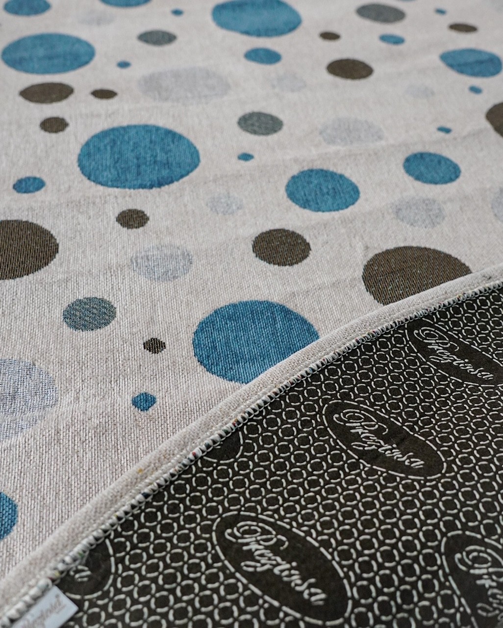 Il tappeto Tondo Preziosa è antiscivolo. Un gusto moderno e giocoso che si presta a camerette o ha stili moderni e pieni di energia. Fondo chiaro e decorazioni con pois.