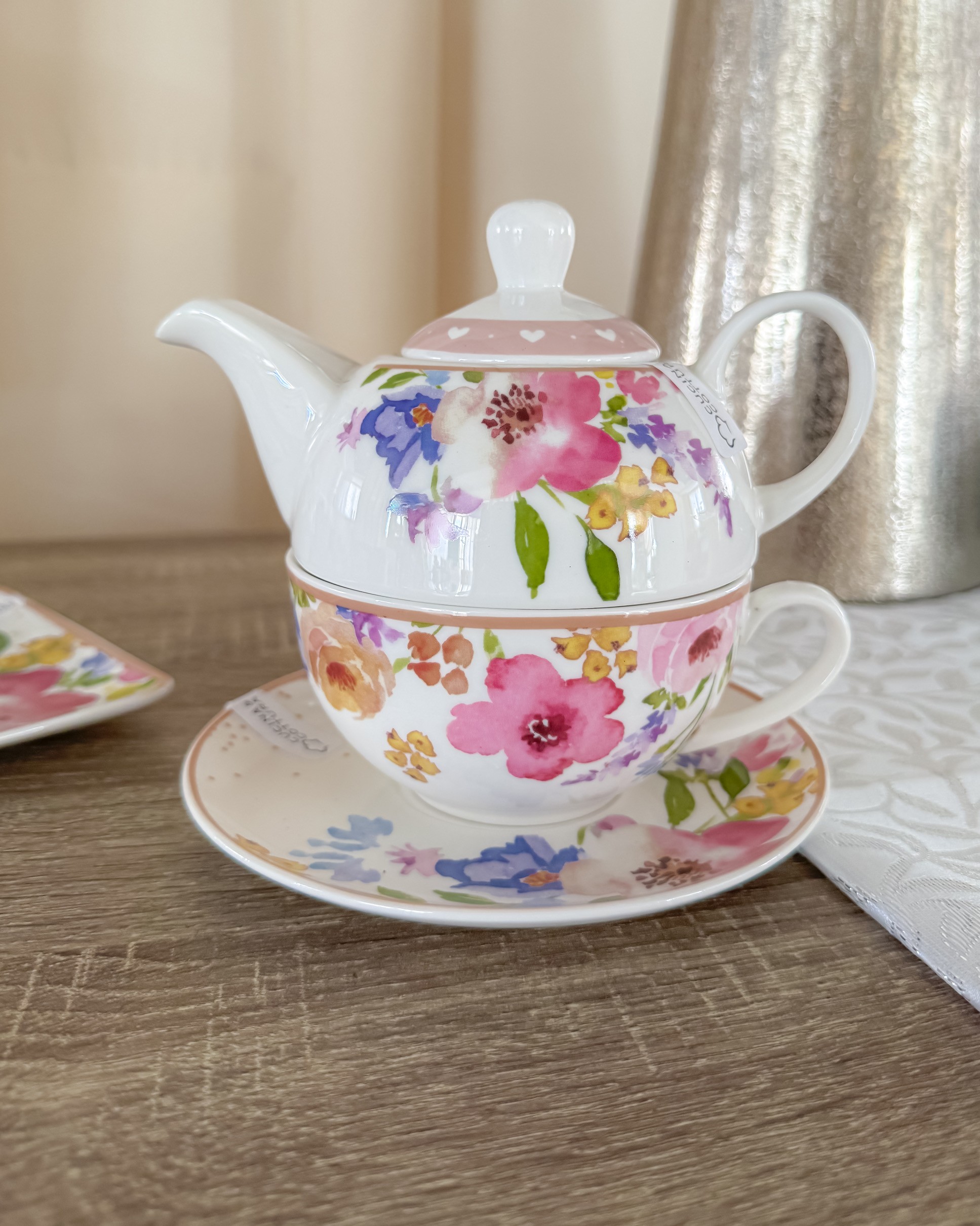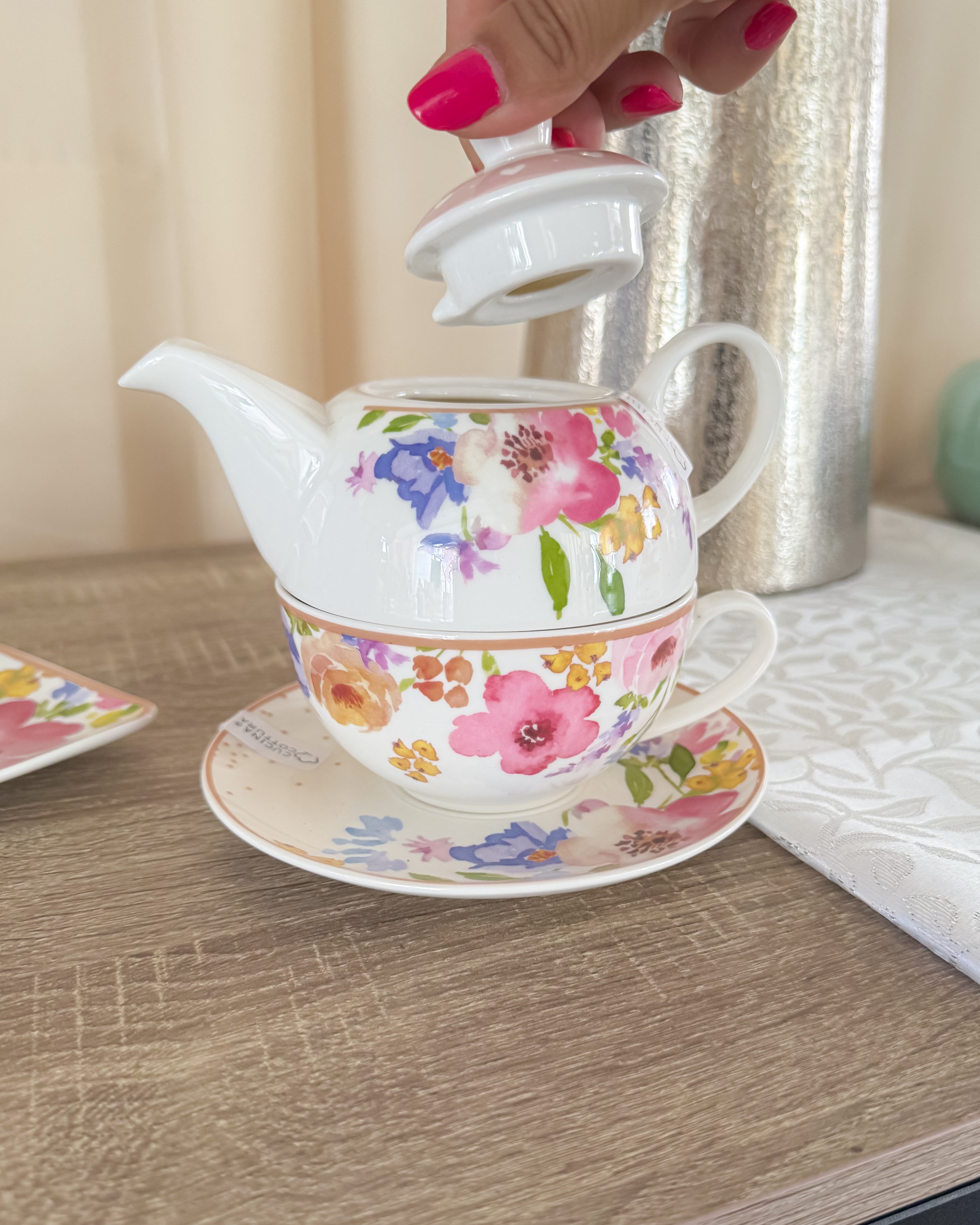 Teiera Glady Con Tazza In Porcellana Ad Con 2 Motivi Floreali