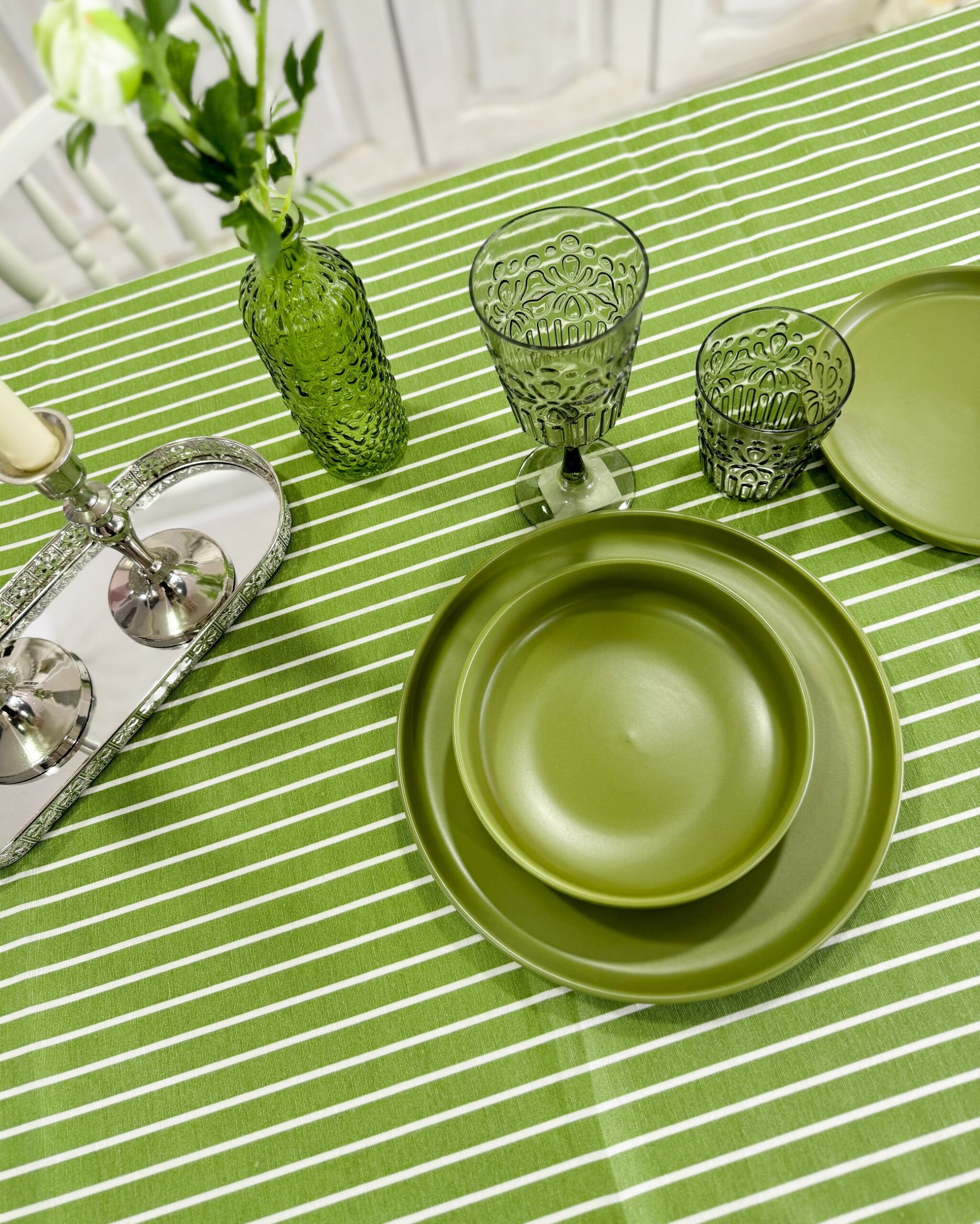 Tovaglia in Cotone Da 6 e 12 Posti Linea Dizzy A Righe Verde o Azzurra