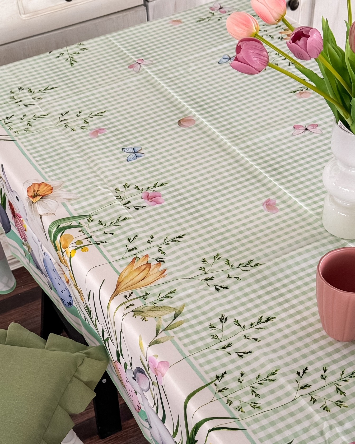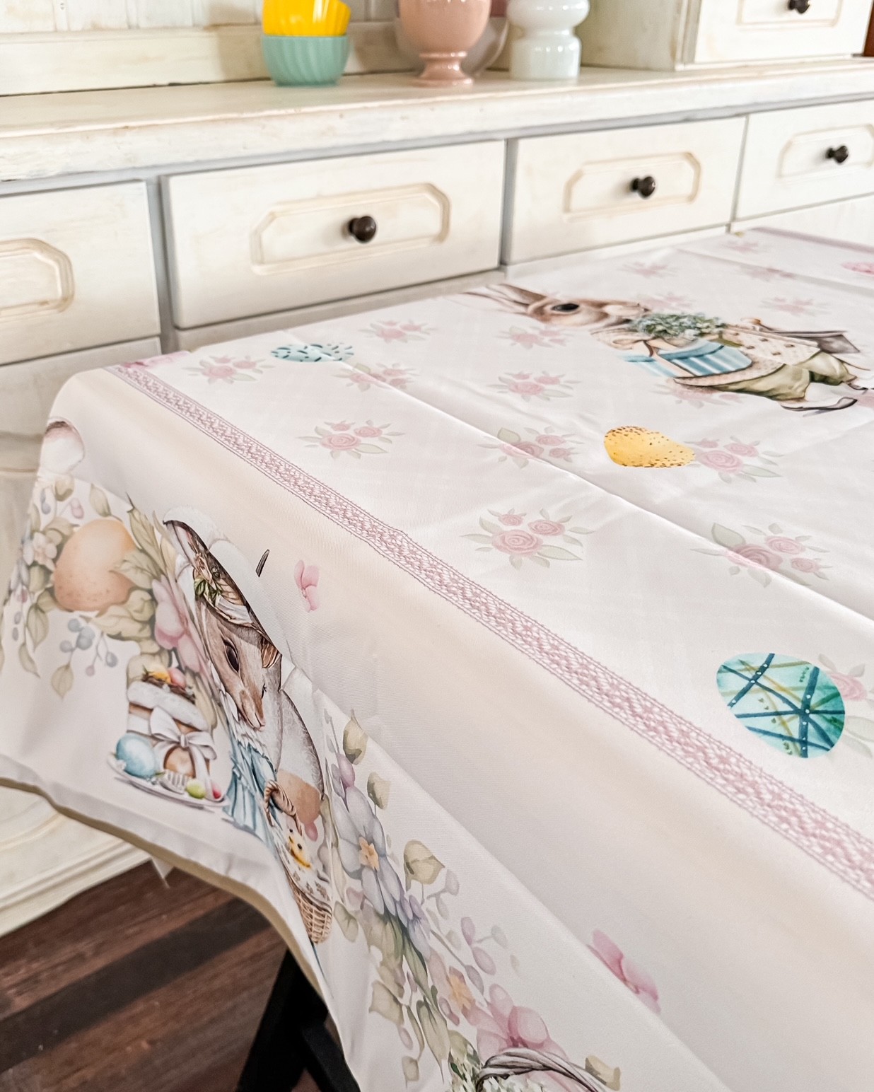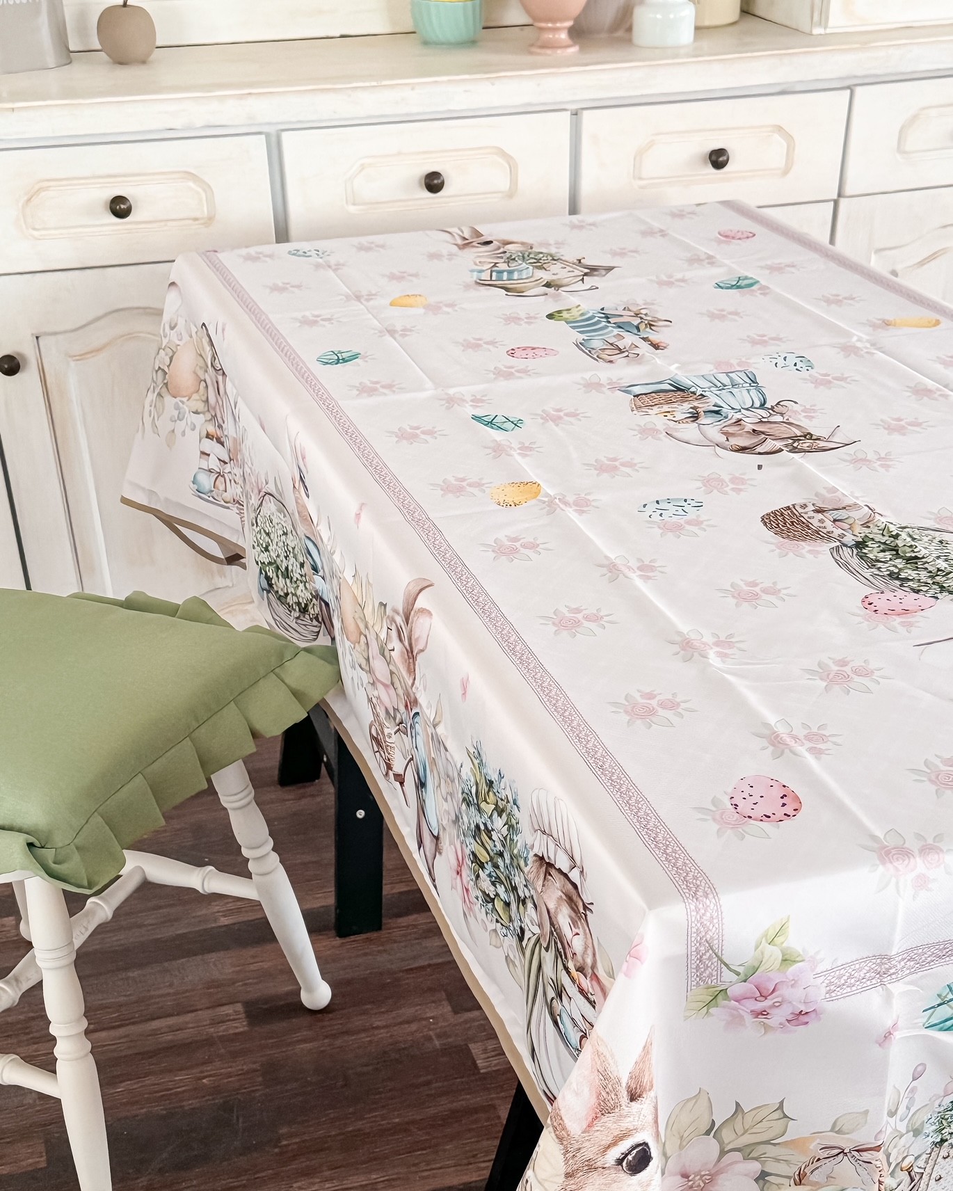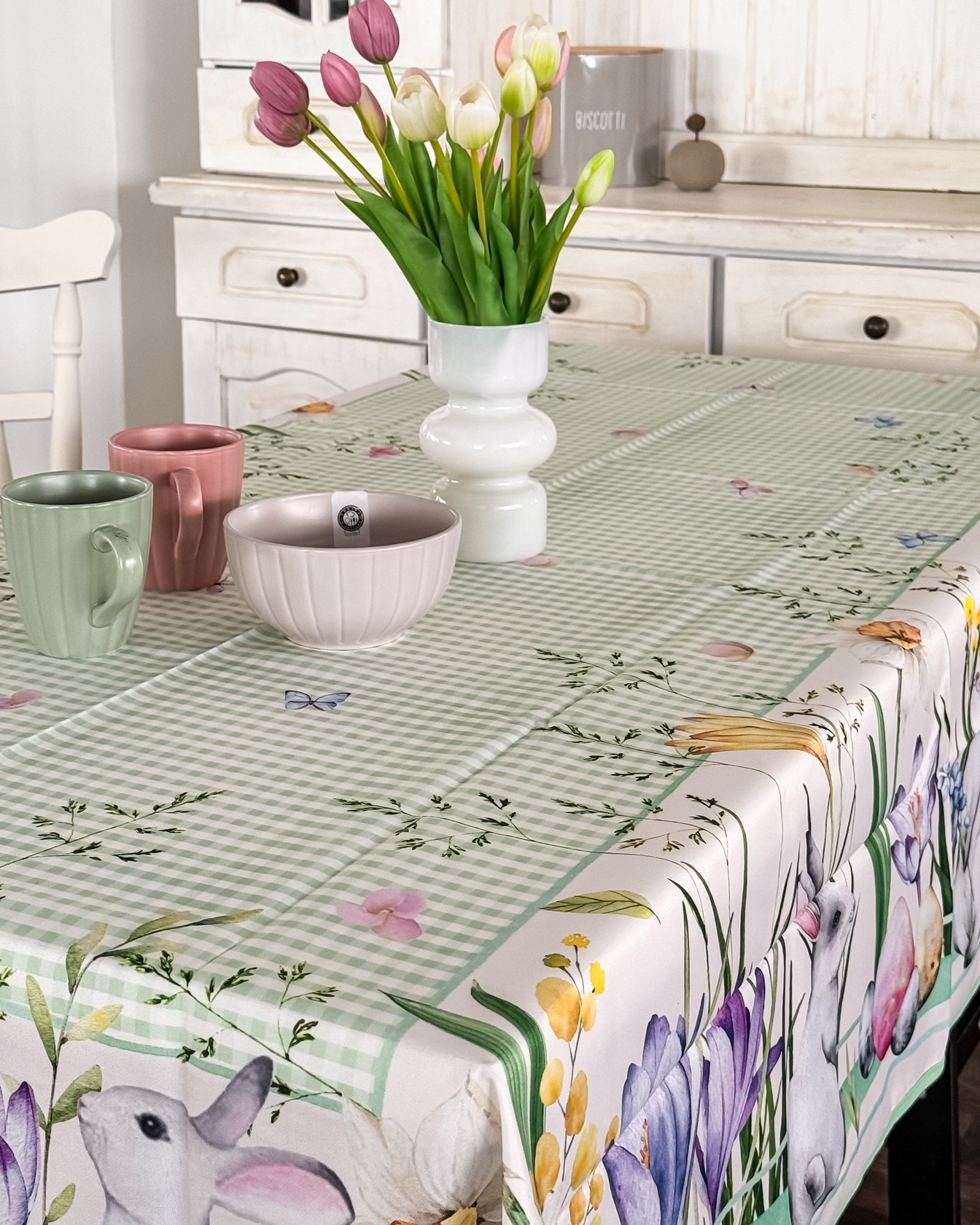 La tovaglia I Pasqualini fa parte di una linea pensata per celebrare le festività pasquali, Fancy Home ha pensato a 4 modelli, con delicati colori primaverili. È un’antimacchia, in stampa digitale piazzata.