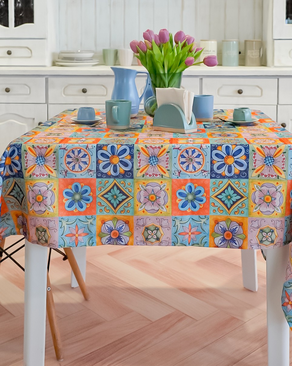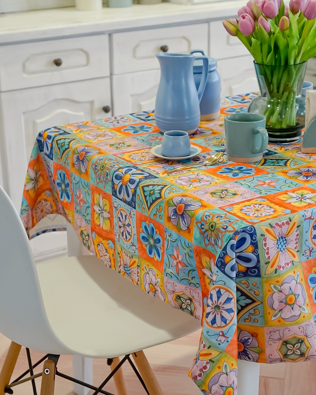 Tovaglia Giorgia Maioliche Antimacchia Stampa Digitale by Benedetta Parodi Vingi Ricami In Varie Misure