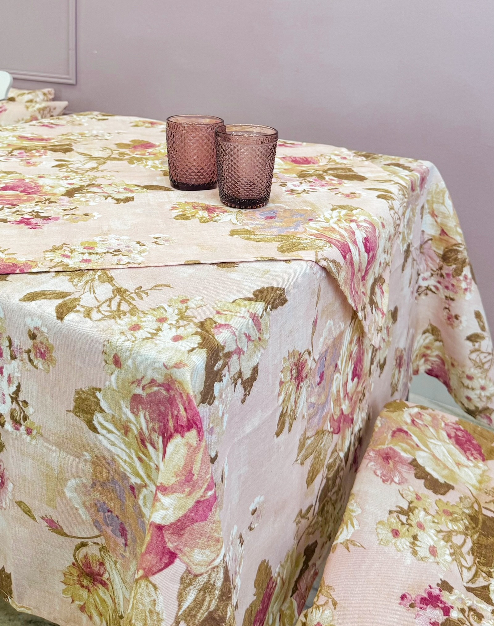 Dallo stile inconfondibile, questa tovaglia appartenente alla linea July, unisce Bellezza e freschezza in floreale con fondo rosa-