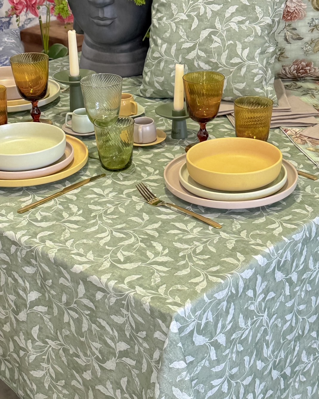 Tovaglia Linea Midory in Cotone Verde Floreale 6 e 12 Posti