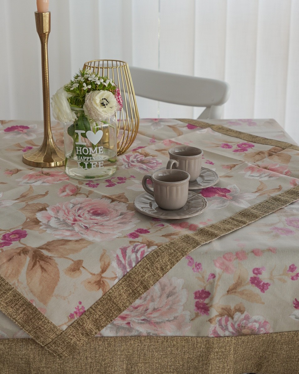 Tovaglia Antimacchia Pashà da 6 e da 12 Posti Nature Gatto e Fiori