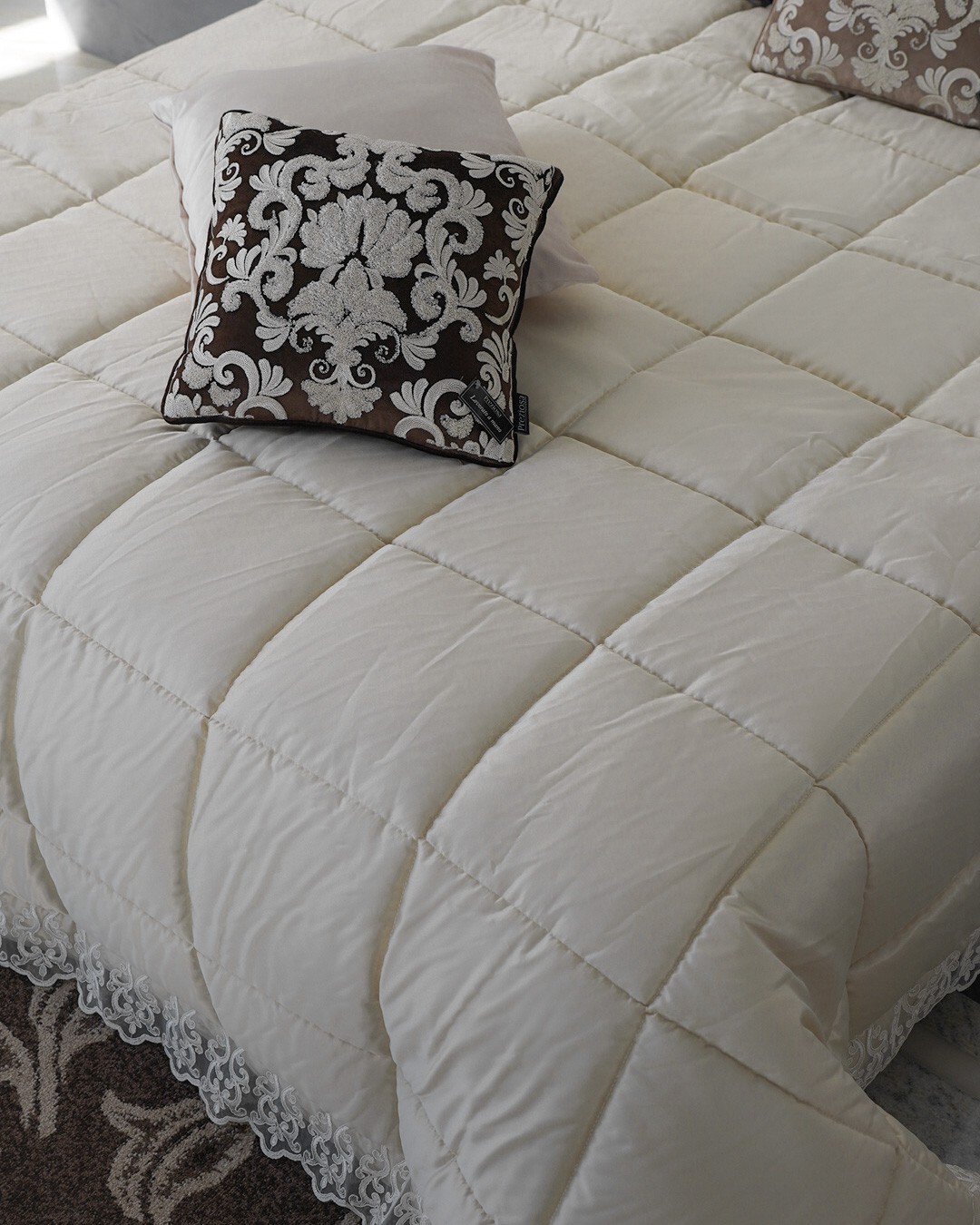 Trapunta Isabel Matrimoniale Panna con Bordo in Pizzo