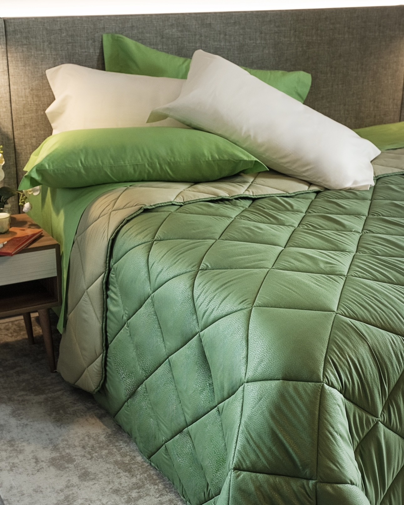Trapunta Piumone Indicolor Double Face Verde Chiaro Verde Scuro Biancaluna