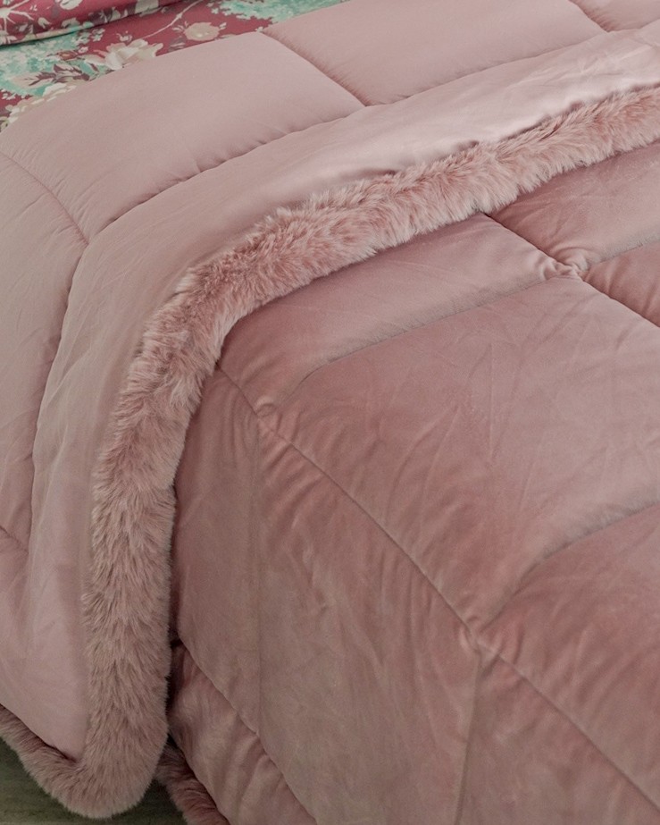 La vedi ed è subito inverno, la trapunta Vienna è una trapunta con una trapuntatura quadrettata e il bordo in pelliccetta. In abbinamento puoi scegliere il cuscino.
