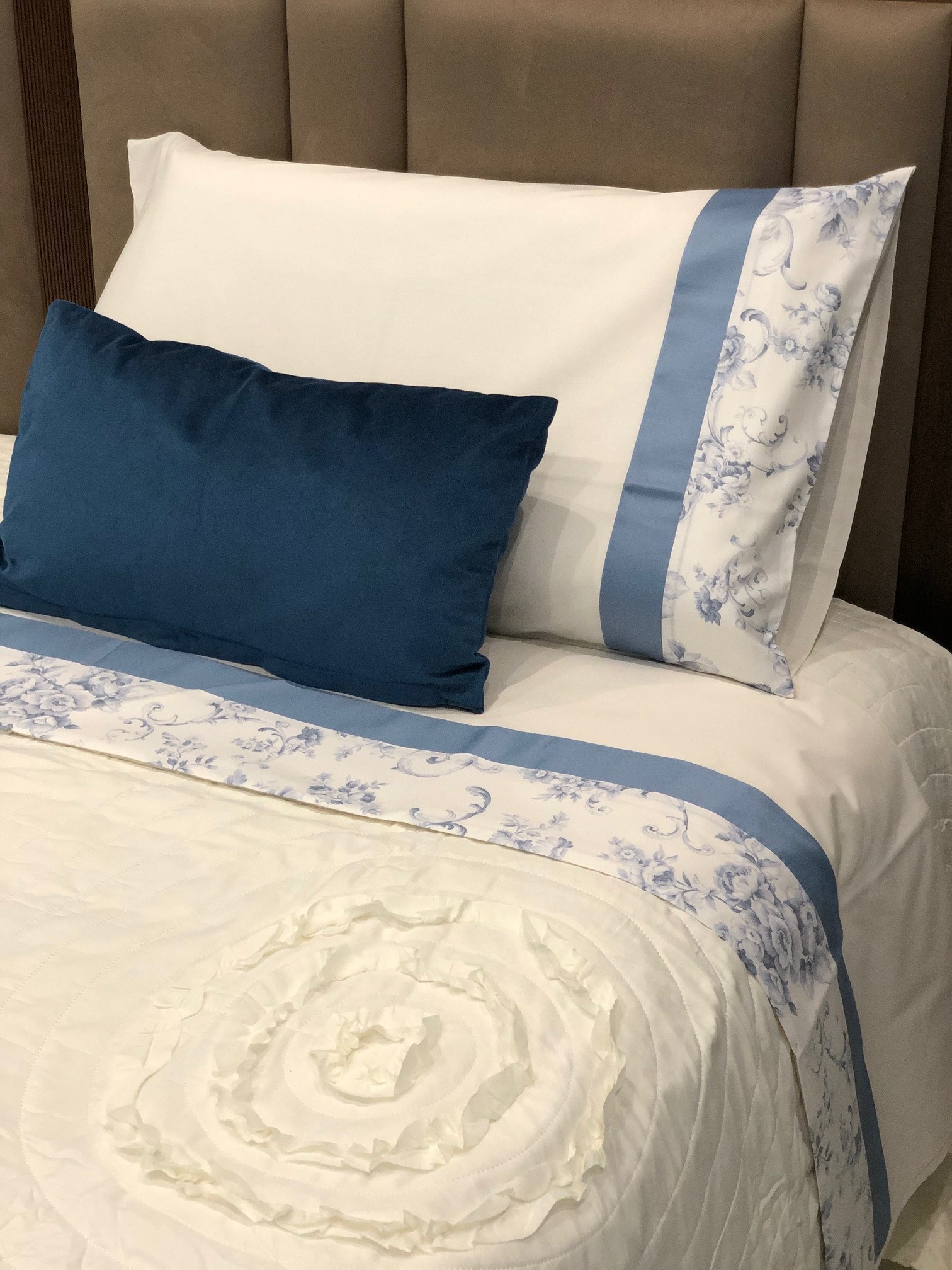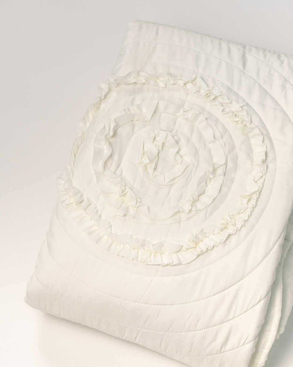 Un elegantissimo trapuntino matrimoniale con decorazione sul lato tono su tono.