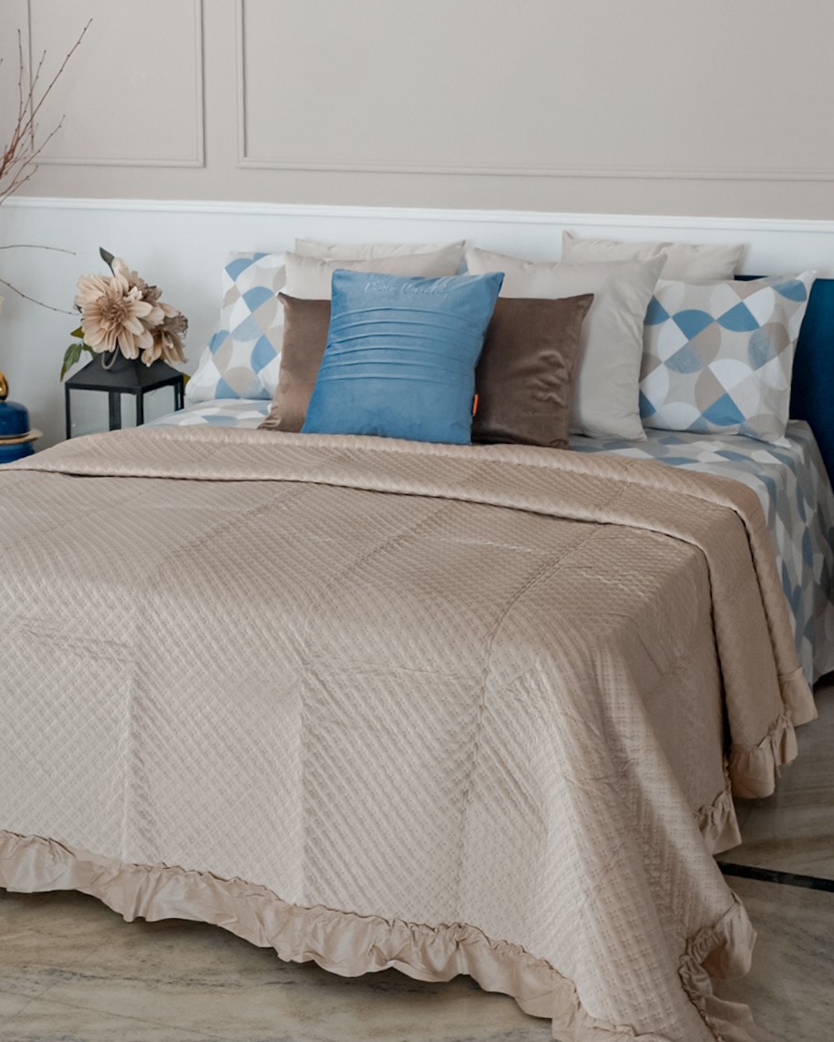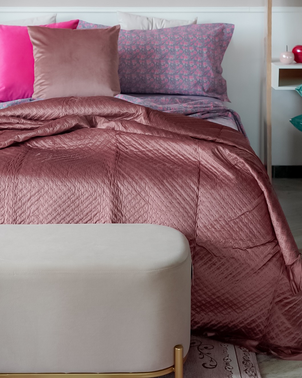 Trapuntino Matrimoniale Velvet Con Rouches E Impuntura a Fiore Vari Colori