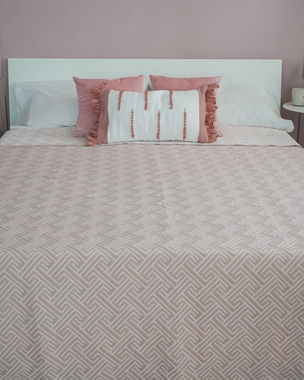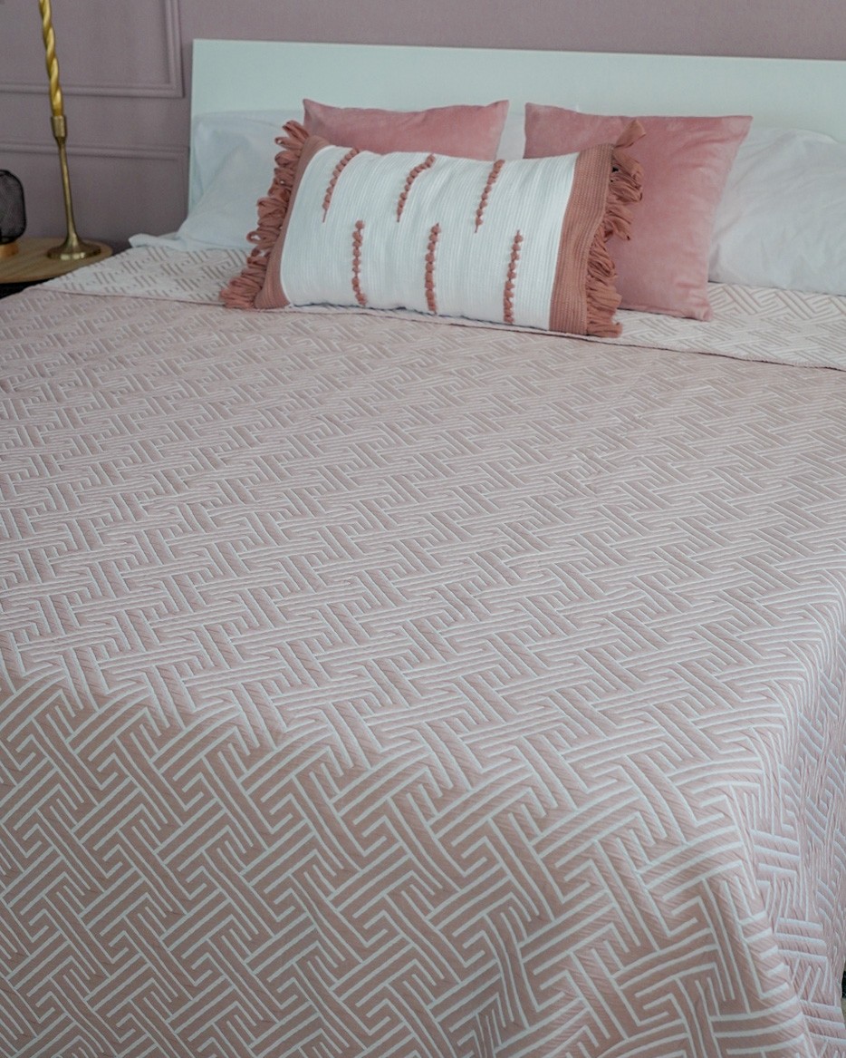 Il trapuntino Lola di Kuveè è un trapuntino leggero perfetto per la primavera/estate. Ha una trama geometrica bicolore ed un tessuto jacquard.