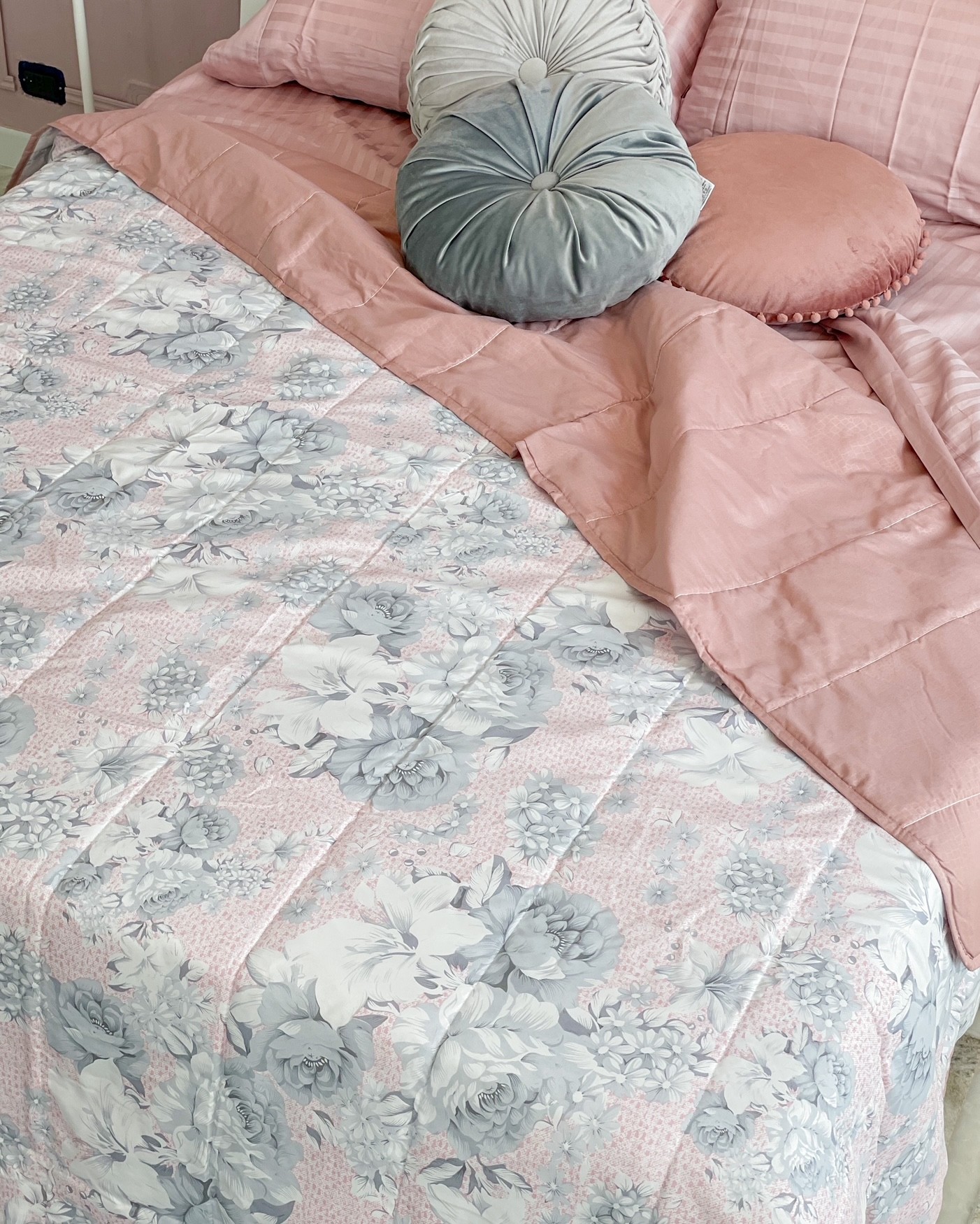Trapuntino Primaverile Matrimoniale Giulietta Double-Face Floreale Toni del Rosa